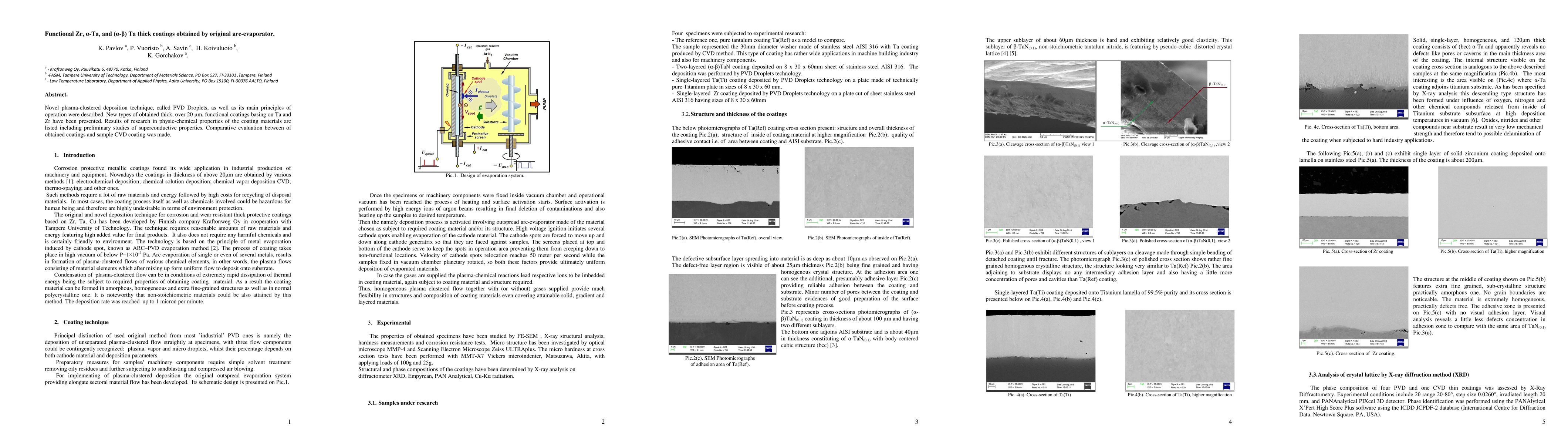 This paper introduces a novel PVD Droplets technique for depositing thick functional coatings over 20 μm based on Zr and Ta, detailing their physico-chemical properties and preliminary superconductive studies. Comparative analysis shows these coatings outperform conventional CVD coatings.