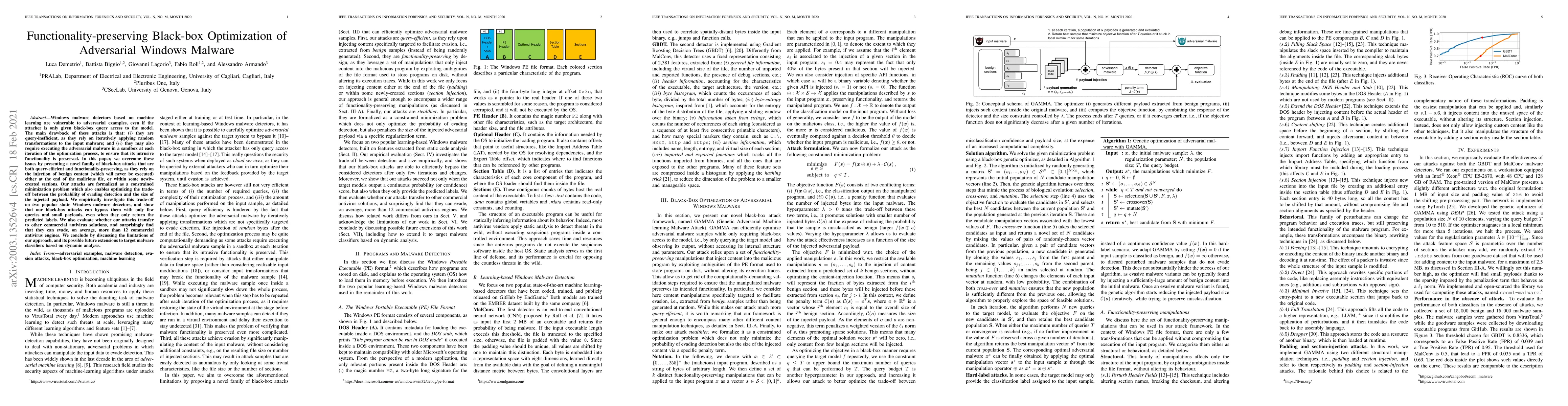 This paper introduces novel black-box attacks against Windows malware detectors that are both query-efficient and functionality-preserving by injecting benign content into the malware. The attacks can bypass multiple static detectors and commercial antivirus engines with minimal queries and payloads, highlighting vulnerabilities in current detection methods.