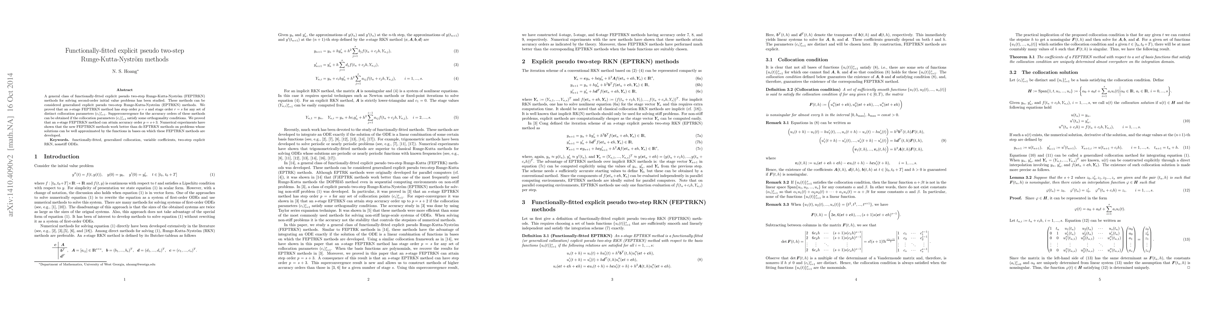 This paper introduces functionally-fitted explicit pseudo two-step Runge-Kutta-Nyström (FEPTRKN) methods for solving second-order initial value problems, proving they achieve step and stage order $p = s$ and $r = s$. Numerical experiments show FEPTRKN methods outperform generalized EPTRKN methods, especially when solutions align with the method's basis functions.