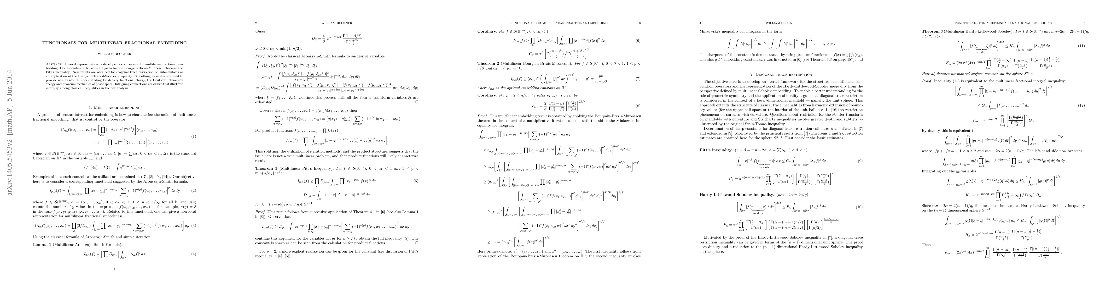 A novel representation is developed as a measure for multilinear fractional embedding. Corresponding extensions are given for the Bourgain-Brezis-Mironescu theorem and Pitt's inequality. New results are obtained for diagonal trace restriction on submanifolds as an application of the Hardy-Littlewood-Sobolev inequality. Smoothing estimates are used to provide new structural understanding for density functional theory, the Coulomb interaction energy and quantum mechanics of phase space. Intriguing connections are drawn that illustrate interplay among classical inequalities in Fourier analysis.