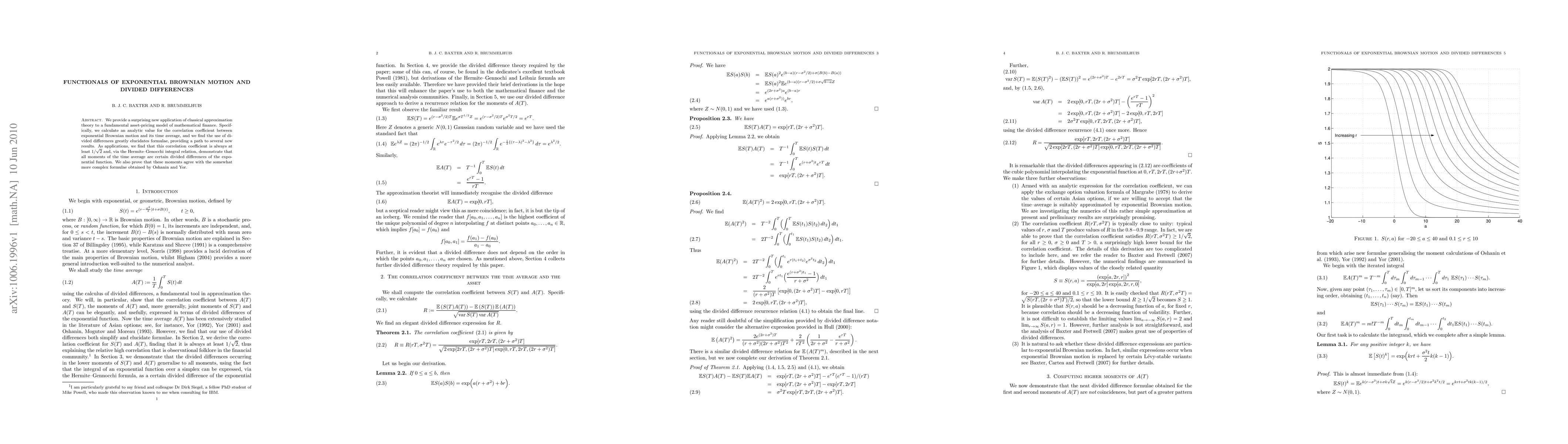 This paper applies classical approximation theory to an asset-pricing model in mathematical finance, calculating an analytic value for the correlation coefficient between exponential Brownian motion and its time average. The use of divided differences simplifies formulae and reveals that all moments of the time average are certain divided differences of the exponential function, agreeing with more complex existing results.