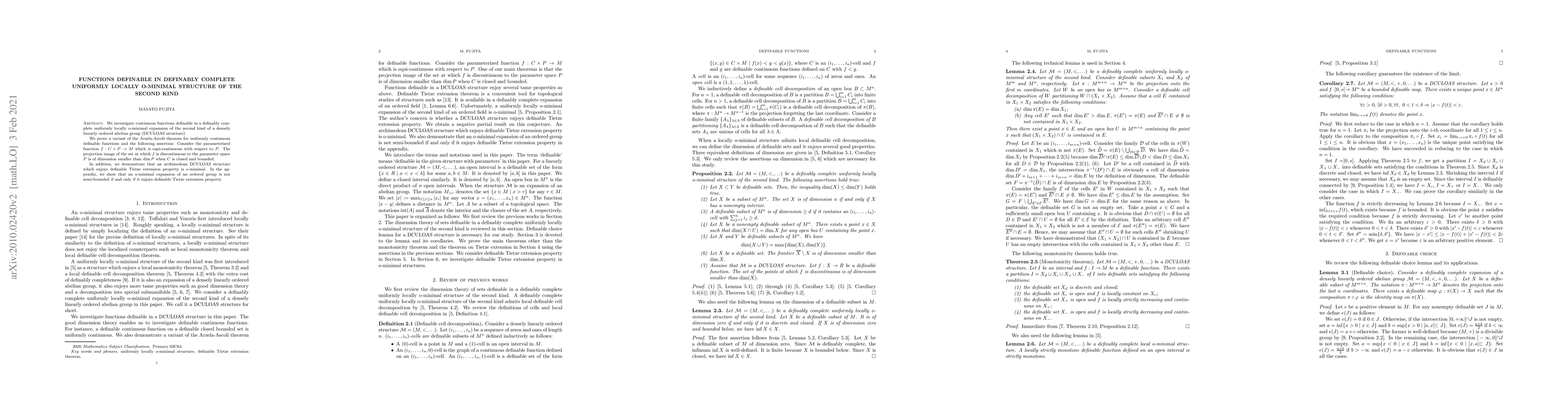 We investigate continuous functions definable in a definably complete uniformly locally o-minimal expansion of the second kind of a densely linearly ordered abelian group (DCULOAS structure). We prove a variant of the Arzela-Ascoli theorem for uniformly continuous definable functions and the following assertion: Consider the parameterized function $f:C \times P \rightarrow M$ which is equi-continuous with respect to $P$. The projection image of the set at which $f$ is discontinuous to the parameter space $P$ is of dimension smaller than $\dim P$ when $C$ is closed and bounded. In addition, we demonstrate that an archimedean DCULOAS structure which enjoys definable Tietze extension property is o-minimal. In the appendix, we show that an o-minimal expansion of an ordered group is not semi-bounded if and only if it enjoys definable Tietze extension property.
