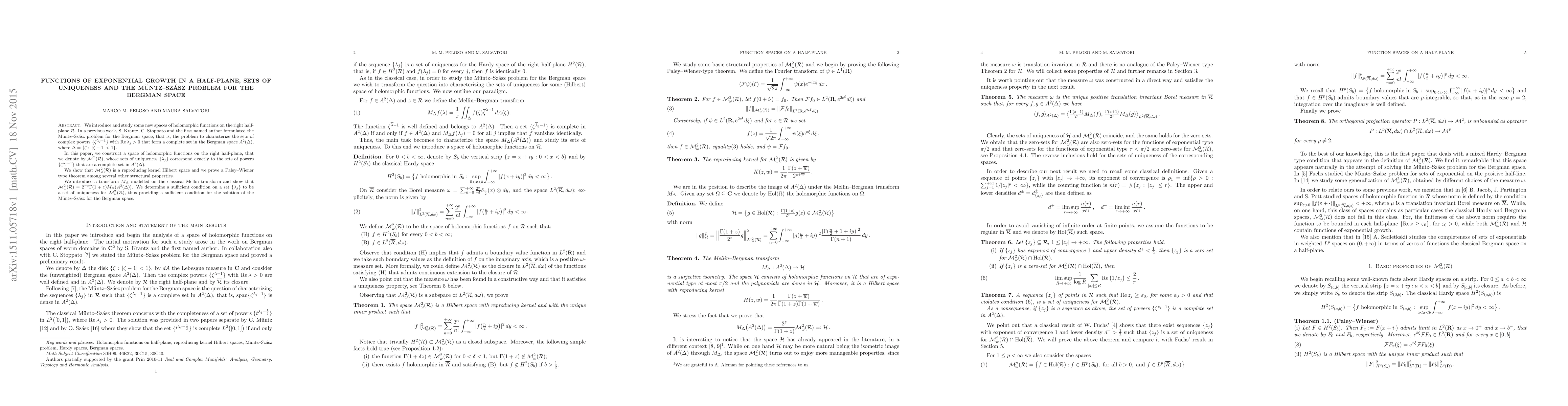 This paper introduces new spaces of holomorphic functions on the right half-plane and constructs a reproducing kernel Hilbert space that corresponds to sets of powers forming a complete set in Bergman space. It provides a sufficient condition for the M"untz--Sz'asz problem solution for the Bergman space.
