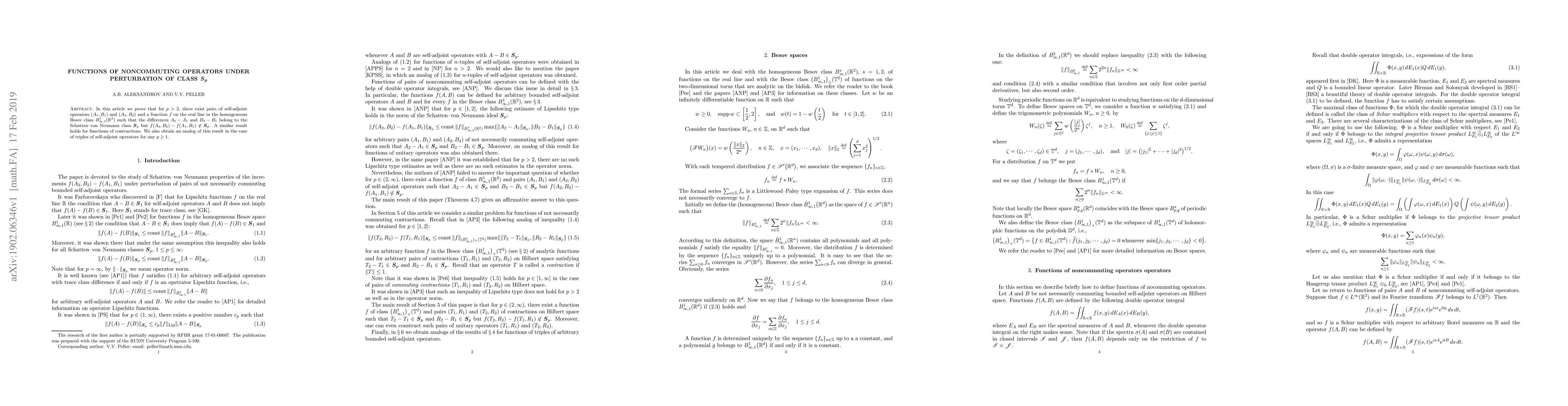 In this article we prove that for $p>2$, there exist pairs of self-adjoint operators $(A_1,B_1)$ and $(A_2,B_2)$ and a function $f$ on the real line in the homogeneous Besov class $B_{\infty,1}^1({\Bbb R}^2)$ such that the differences $A_2-A_1$ and $B_2-B_1$ belong to the Schatten--von Neumann class $\boldsymbol{S}_p$ but $f(A_2,B_2)-f(A_1,B_1)\not\in\boldsymbol{S}_p$. A similar result holds for functions of contractions. We also obtain an analog of this result in the case of triples of self-adjoint operators for any $p\ge1$