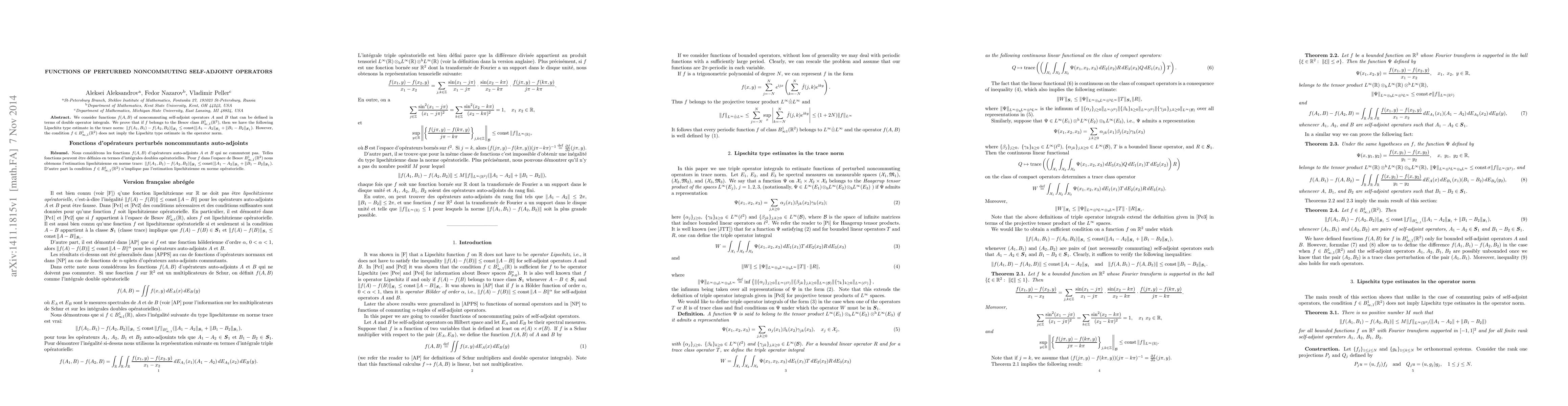 This paper explores functions $f(A,B)$ of noncommuting self-adjoint operators $A$ and $B$, proving a Lipschitz type estimate in the trace norm for $f$ within the Besov class $B_{\be,1}^1(\R^2)$. It concludes that this condition does not guarantee the same estimate in the operator norm.