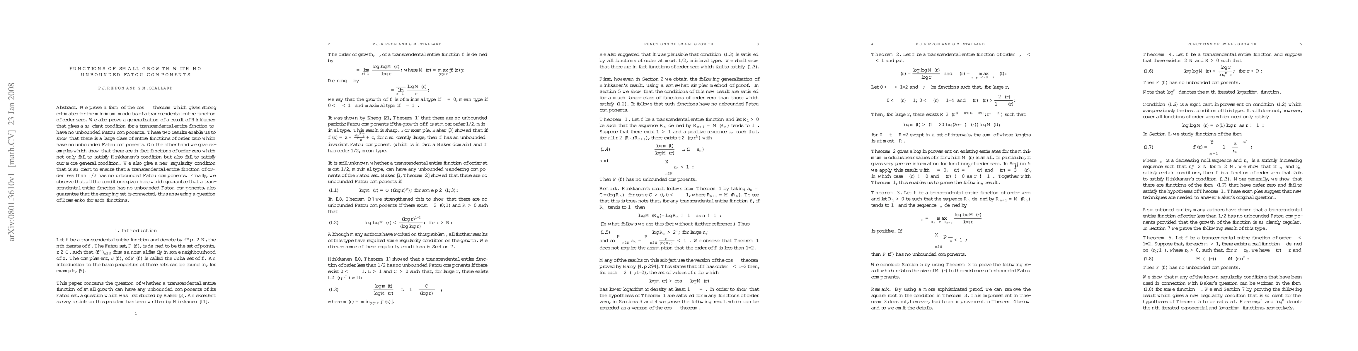 We prove a form of the $\cos \pi \rho$ theorem which gives strong estimates for the minimum modulus of a transcendental entire function of order zero. We also prove a generalisation of a result of Hinkkanen that gives a sufficient condition for a transcendental entire function to have no unbounded Fatou components. These two results enable us to show that there is a large class of entire functions of order zero which have no unbounded Fatou components. On the other hand we give examples which show that there are in fact functions of order zero which not only fail to satisfy Hinkkanen's condition but also fail to satisfy our more general condition. We also give a new regularity condition that is sufficient to ensure that a transcendental entire function of order less than 1/2 has no unbounded Fatou components. Finally, we observe that all the conditions given here which guarantee that a transcendental entire function has no unbounded Fatou components, also guarantee that the escaping set is connected, thus answering a question of Eremenko for such functions.