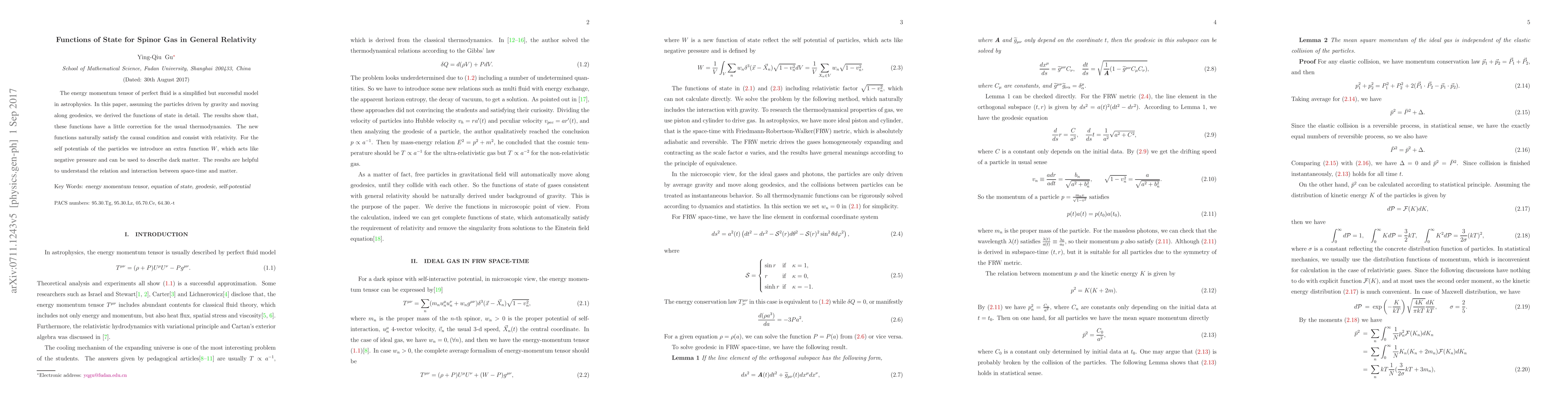 The energy momentum tensor of perfect fluid is a simplified but successful model in astrophysics. In this paper, assuming the particles driven by gravity and moving along geodesics, we derived the functions of state in detail. The results show that, these functions have a little correction for the usual thermodynamics. The new functions naturally satisfy the causal condition and consist with relativity. For the self potentials of the particles we introduce an extra function $W$, which acts like negative pressure and can be used to describe dark matter. The results are helpful to understand the relation and interaction between space-time and matter.