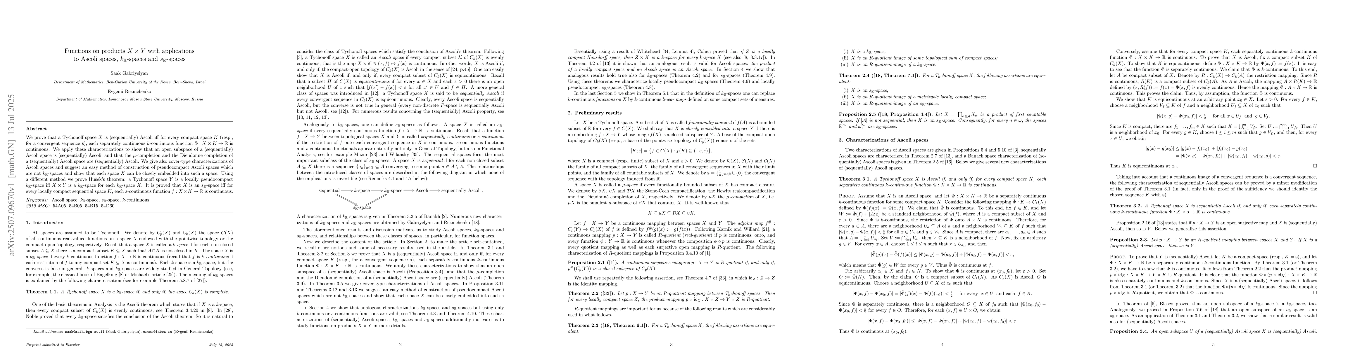 We prove that a Tychonoff space $X$ is (sequentially) Ascoli iff for every compact space $K$ (resp., for a convergent sequence $\mathbf{s}$), each separately continuous $k$-continuous function $\Phi:X\times K\to \mathbb{R}$ is continuous. We apply these characterizations to show that an open subspace of a (sequentially) Ascoli space is (sequentially) Ascoli, and that the $\mu$-completion and the Dieudonn\'{e} completion of a (sequentially) Ascoli space are (sequentially) Ascoli. We give also cover-type characterizations of Ascoli spaces and suggest an easy method of construction of pseudocompact Ascoli spaces which are not $k_\mathbb{R}$-spaces and show that each space $X$ can be closely embedded into such a space. Using a different method we prove Hu\v{s}ek's theorem: a Tychonoff space $Y$ is a locally pseudocompact $k_\mathbb{R}$-space iff $X\times Y$ is a $k_\mathbb{R}$-space for each $k_\mathbb{R}$-space $X$. It is proved that $X$ is an $s_\mathbb{R}$-space iff for every locally compact sequential space $K$, each $s$-continuous function $f:X\times K\to\mathbb{R}$ is continuous.