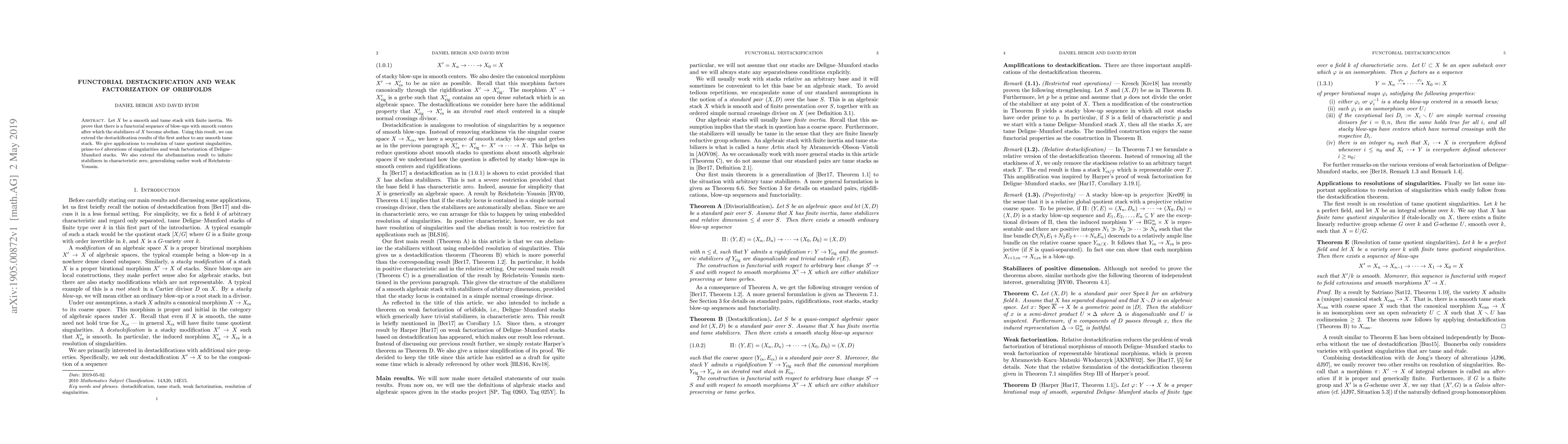 This paper proves the existence of a functorial sequence of blow-ups that destackifies a smooth tame stack by making its stabilizers abelian, extending previous destackification results. Applications include resolution of tame quotient singularities and weak factorization of Deligne-Mumford stacks.