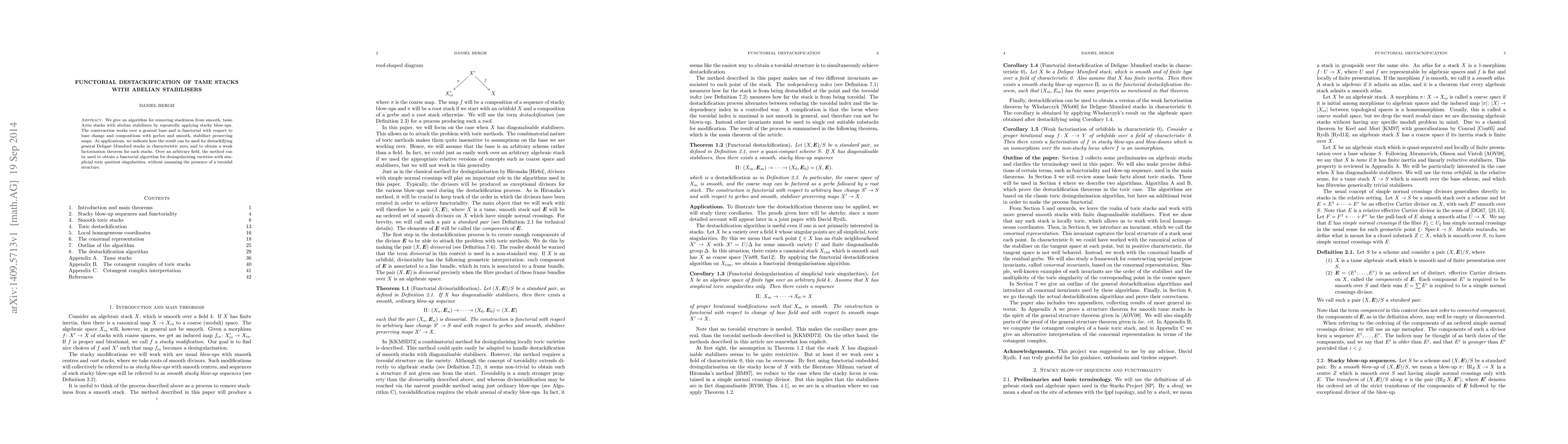 Summary: The paper presents a functorial algorithm for destackifying smooth, tame Artin stacks with abelian stabilisers via stacky blow-ups, which works over any base and applies to desingularisation of varieties with toric singularities in characteristic zero. This method also facilitates the weak factorisation theorem for Deligne-Mumford stacks.