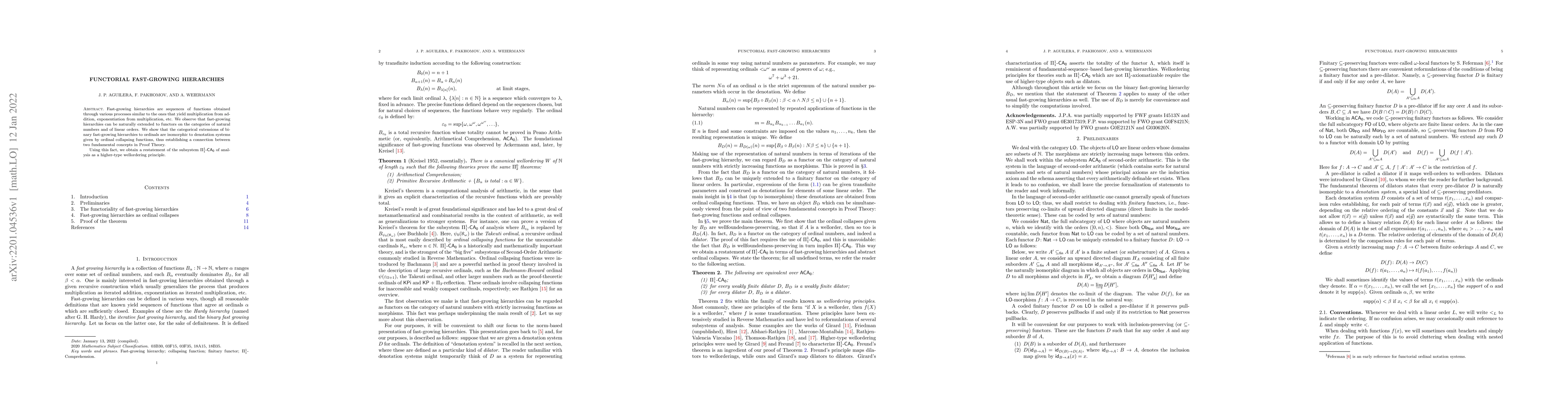 This paper explores the extension of fast-growing hierarchies to functors in category theory, linking them to ordinal collapsing functions. It reformulates the analytical subsystem $Pi^1_1$-CA$_0$ as a higher-type wellordering principle, bridging proof theory and category theory.