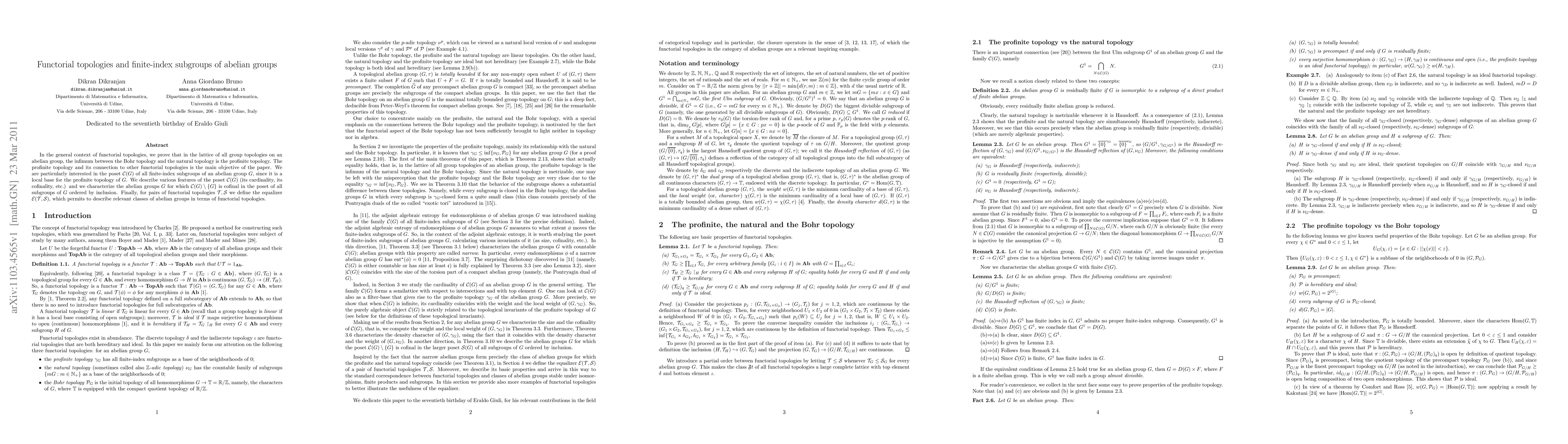 This paper explores the relationship between functorial topologies on abelian groups and their finite-index subgroups, proving that the infimum of the Bohr and natural topologies is the profinite topology. It characterizes the poset of finite-index subgroups as a local base for the profinite topology and investigates its properties.