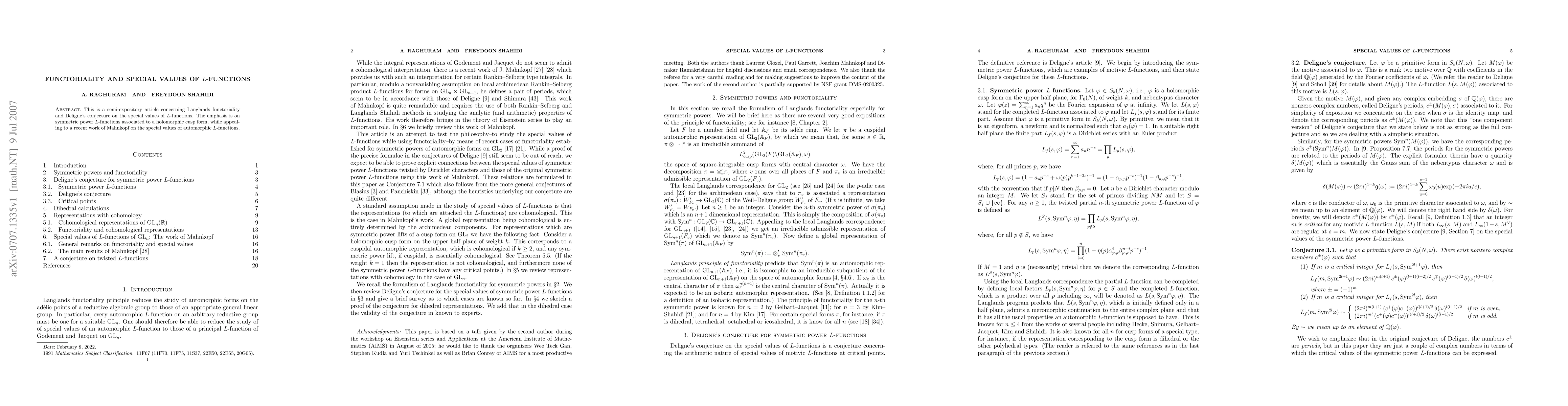 This is a semi-expository article concerning Langlands functoriality and Deligne's conjecture on the special values of $L$-functions. The emphasis is on symmetric power $L$-functions associated to a holomorphic cusp form, while appealing to a recent work of Mahnkopf on the special values of automorphic $L$-functions.