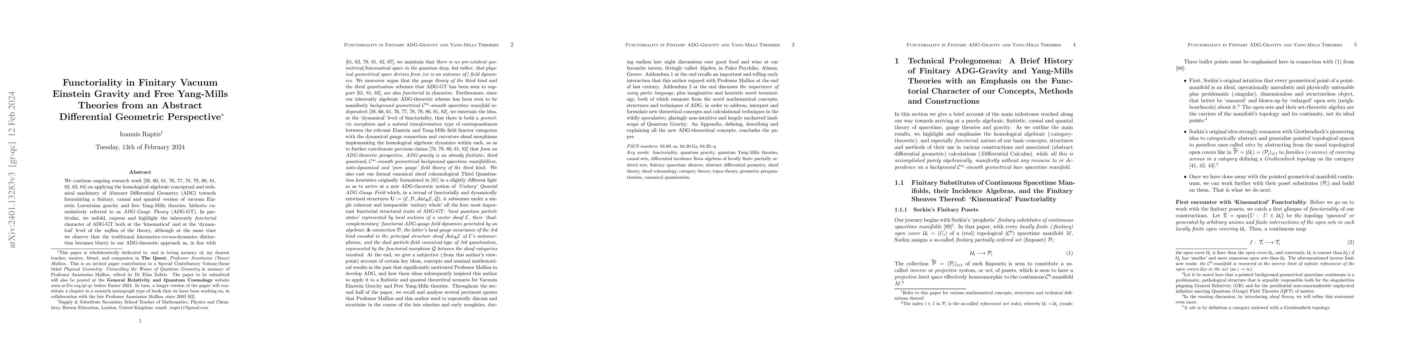 This paper utilizes the homological algebraic tools of Abstract Differential Geometry to develop a finitary, causal, and quantum version of vacuum Einstein gravity and free Yang-Mills theories, emphasizing their functorial relationships.