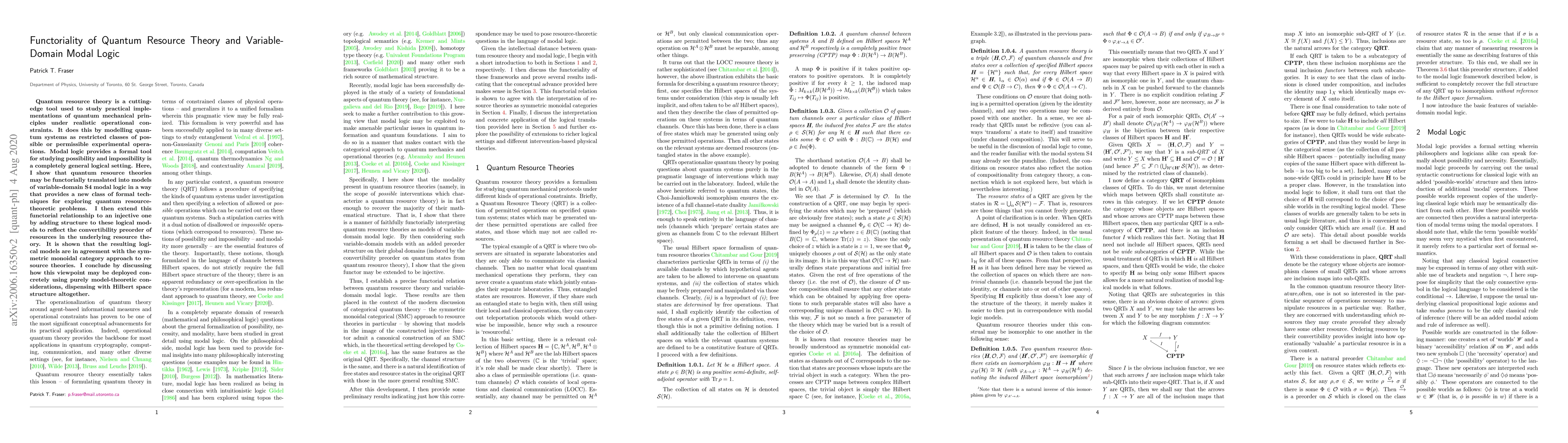 This research demonstrates a functorial translation of quantum resource theories into variable-domain S4 modal logic models, offering new formal techniques for quantum resource-theoretic problems. The translation is extended to an injective one by incorporating convertibility preorder structure, enabling concrete applications in the field.