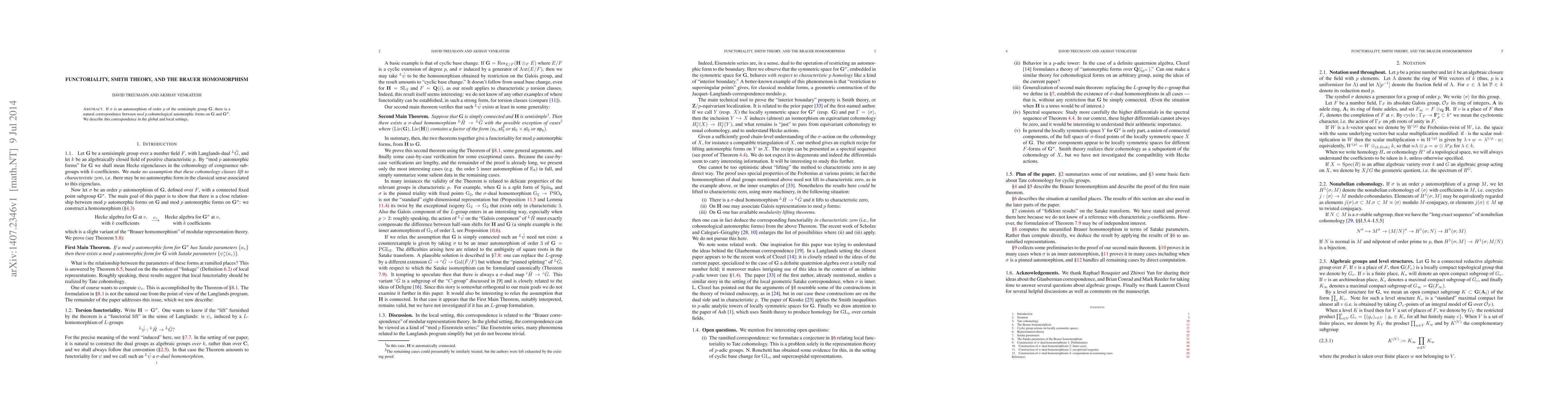 If $\sigma$ is an automorphism of order $p$ of the semisimple group $\mathbf{G}$, there is a natural correspondence between mod $p$ cohomological automorphic forms on $\mathbf{G}$ and $\mathbf{G}^\sigma$. We describe this correspondence in the global and local settings.