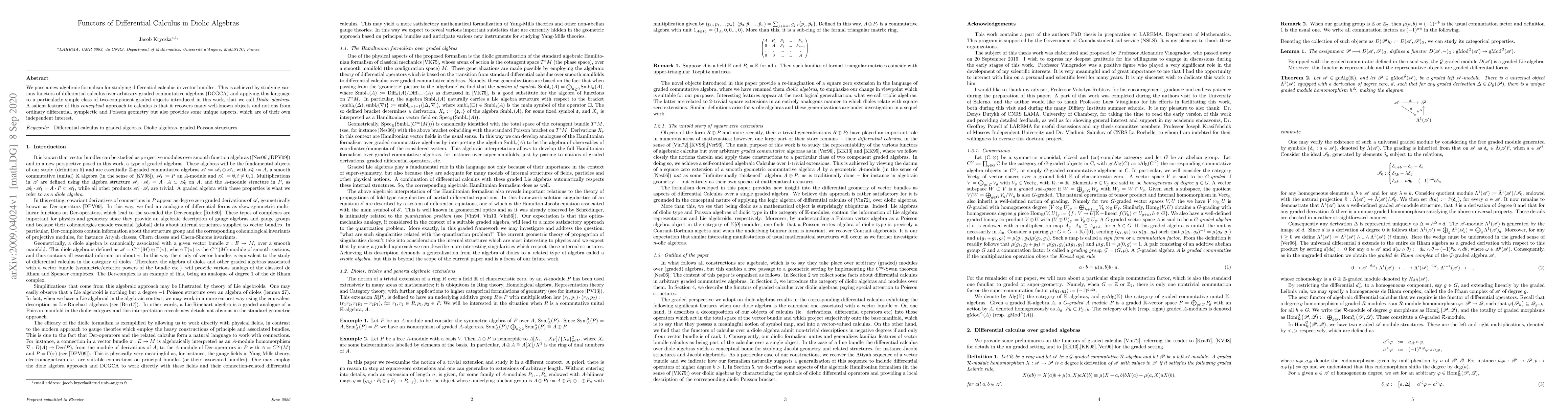This paper introduces a new algebraic formalism for differential calculus using functors over graded commutative algebras, specifically applied to a novel class of two-component graded objects termed Diolic algebras, which recovers traditional differential, symplectic, and Poisson geometry concepts while offering unique insights.