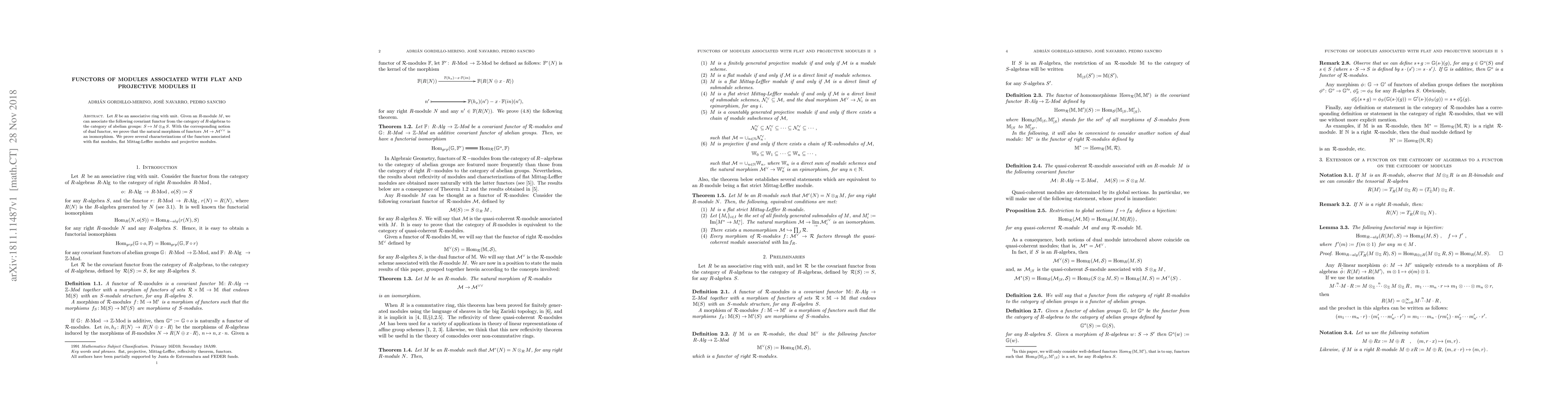 This paper explores the covariant functor $S\mapsto M\otimes_R S$ associated with an $R$-module $M$, proving that the natural morphism $\mathcal M\to \mathcal M^{\vee\vee}$ is an isomorphism and characterizing functors linked to flat and projective modules.
