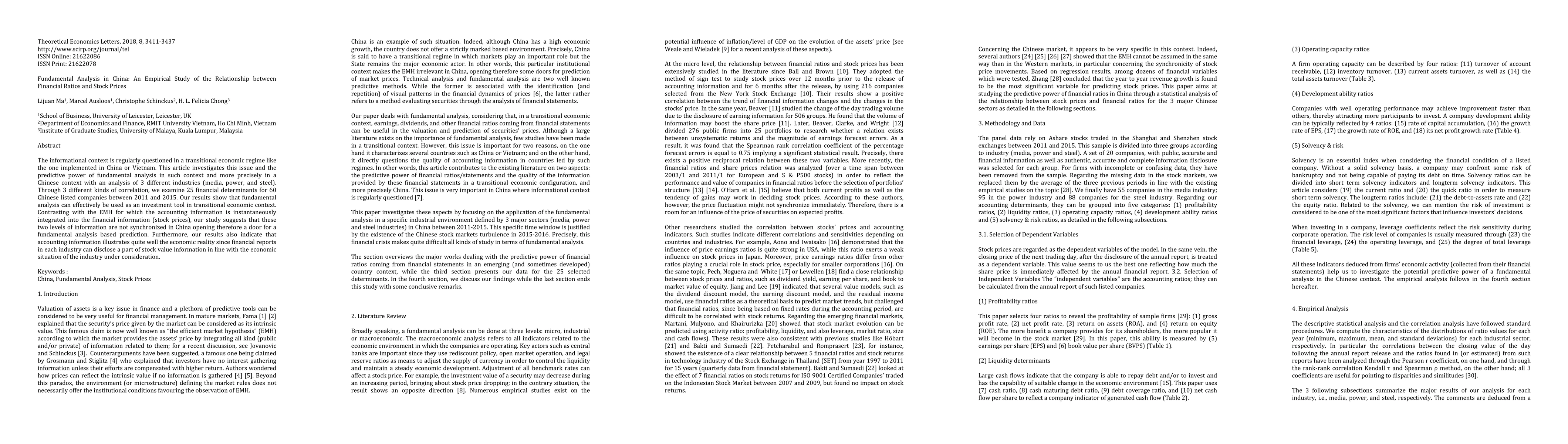The informational context is regularly questioned in a transitional economic regime like the one implemented in China or Vietnam. This article investigates this issue and the predictive power of fundamental analysis in such context and more precisely in a Chinese context with an analysis of 3 different industries (media, power, and steel). Through 3 different kinds of correlation, we examine 25 financial determinants for 60 Chinese listed companies between 2011 and 2015. Our results show that fundamental analysis can effectively be used as an investment tool in transitional economic context. Contrasting with the EMH for which the accounting information is instantaneously integrated into the financial information (stock prices), our study suggests that these two levels of information are not synchronized in China opening therefore a door for a fundamental analysis based prediction. Furthermore, our results also indicate that accounting information illustrates quite well the economic reality since financial reports in each industry can disclose a part of stock value information in line with the economic situation of the industry under consideration.