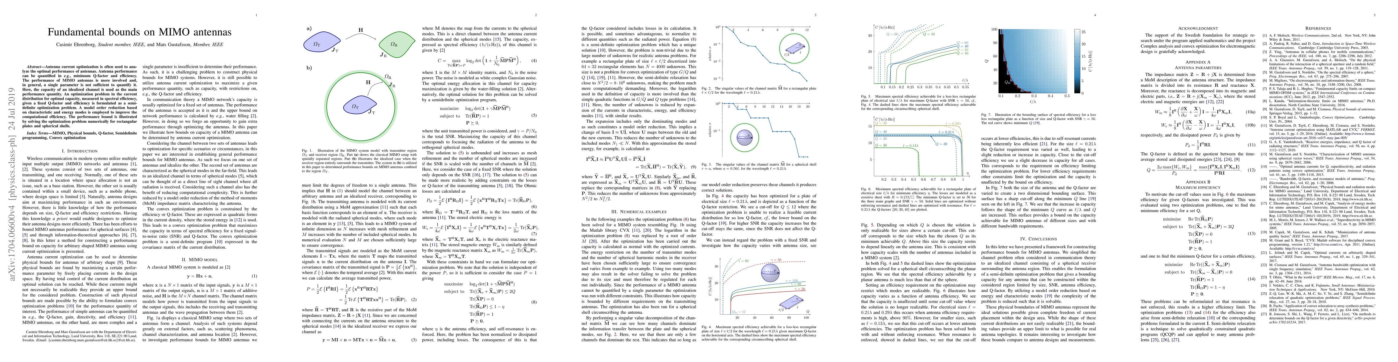 Researchers developed a method to optimize MIMO antenna performance using capacity as the main performance quantity, providing fundamental bounds on optimal design. This work aims to improve computational efficiency while maintaining accuracy in antenna optimization.