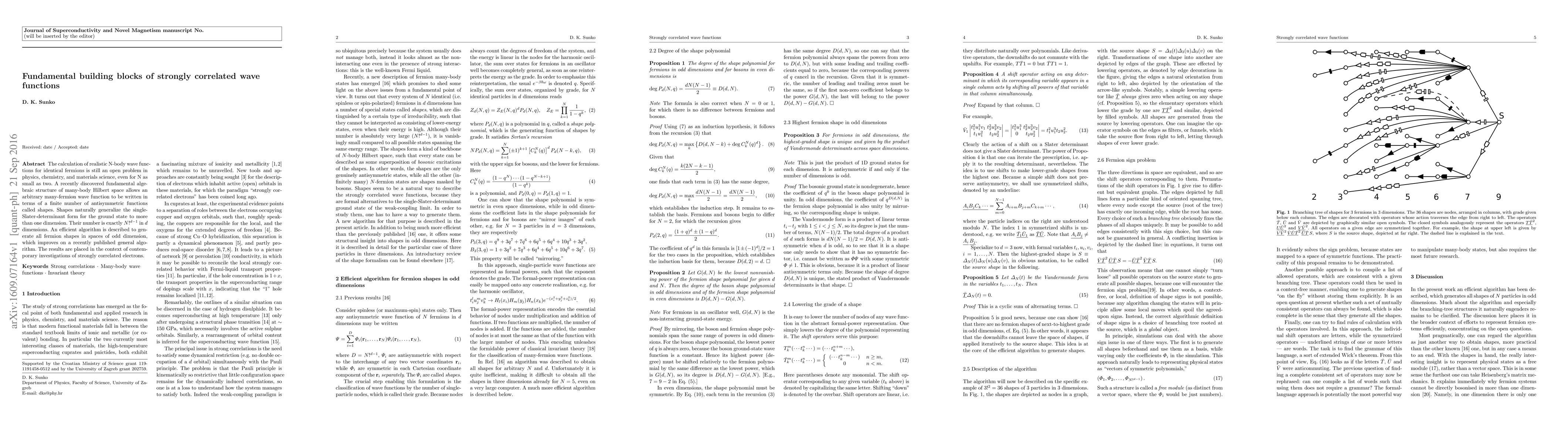 The calculation of realistic N-body wave functions for identical fermions is still an open problem in physics, chemistry, and materials science, even for N as small as two. A recently discovered fundamental algebraic structure of many-body Hilbert space allows an arbitrary many-fermion wave function to be written in terms of a finite number of antisymmetric functions called shapes. Shapes naturally generalize the single-Slater-determinant form for the ground state to more than one dimension. Their number is exactly $N!^{d-1}$ in $d$ dimensions. An efficient algorithm is described to generate all fermion shapes in spaces of odd dimension, which improves on a recently published general algorithm. The results are placed in the context of contemporary investigations of strongly correlated electrons.