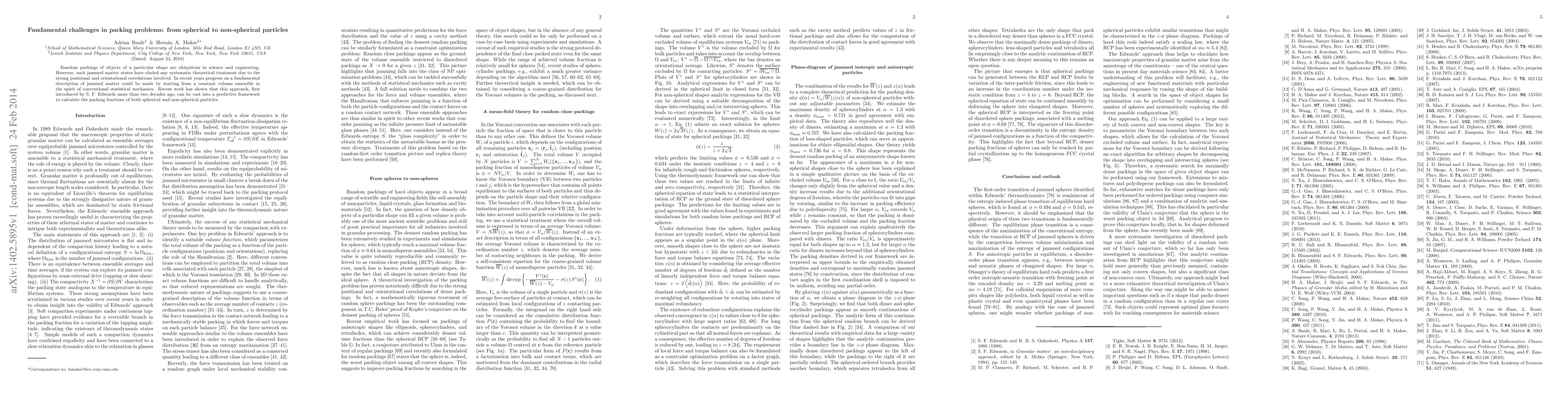 Random packings of objects of a particular shape are ubiquitous in science and engineering. However, such jammed matter states have eluded any systematic theoretical treatment due to the strong positional and orientational correlations involved. In recent years progress on a fundamental description of jammed matter could be made by starting from a constant volume ensemble in the spirit of conventional statistical mechanics. Recent work has shown that this approach, first introduced by S. F. Edwards more than two decades ago, can be cast into a predictive framework to calculate the packing fractions of both spherical and non-spherical particles.