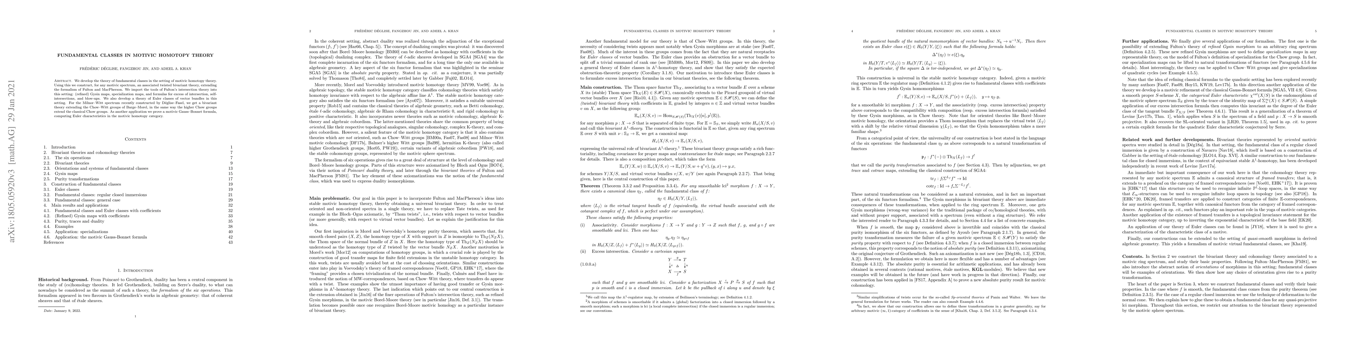 This paper develops the theory of fundamental classes in motivic homotopy theory, constructing associated bivariant theories and importing tools from Fulton's intersection theory, including Euler classes of vector bundles. It also extends Chow-Witt groups and proves a motivic Gauss-Bonnet formula.