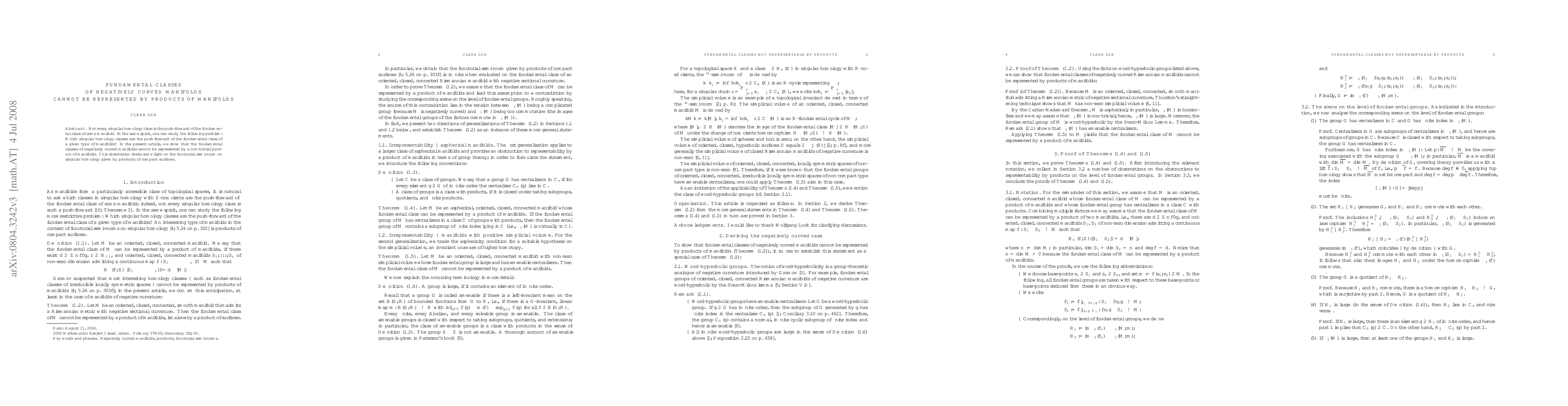 This paper demonstrates that the fundamental classes of negatively curved manifolds cannot be represented by non-trivial products of other manifolds, which provides insight into the functorial semi-norm on singular homology defined by products of compact surfaces.