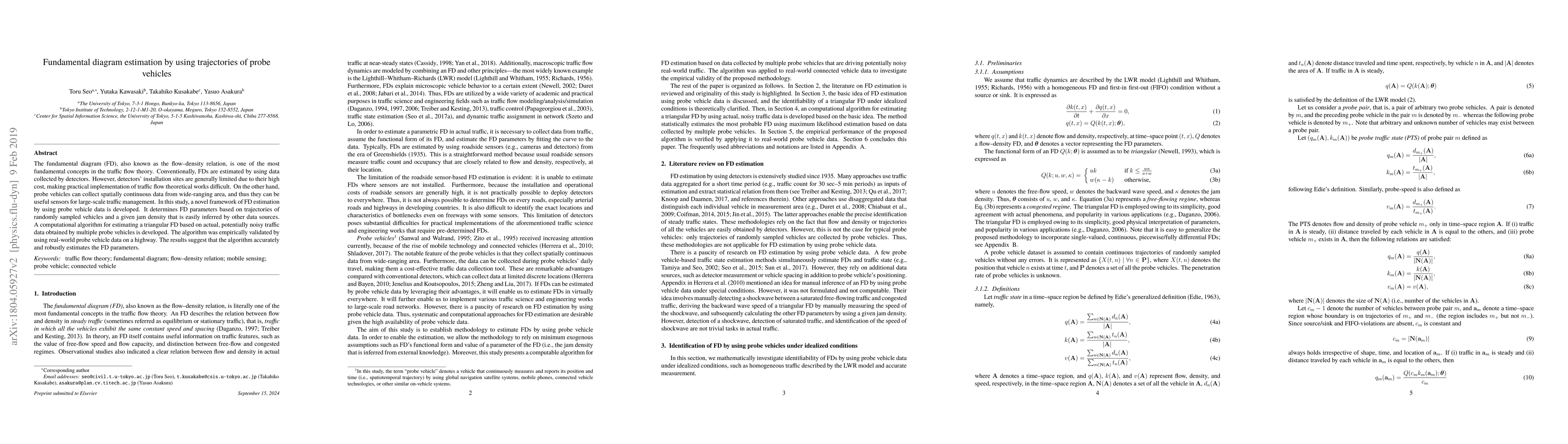 This paper develops a framework for estimating the fundamental diagram (FD) using probe vehicle trajectories, offering a novel approach to traffic flow analysis that leverages mobile sensors. The proposed algorithm accurately determines FD parameters based on noisy traffic data, validated through real-world highway data, demonstrating its potential for large-scale traffic management.