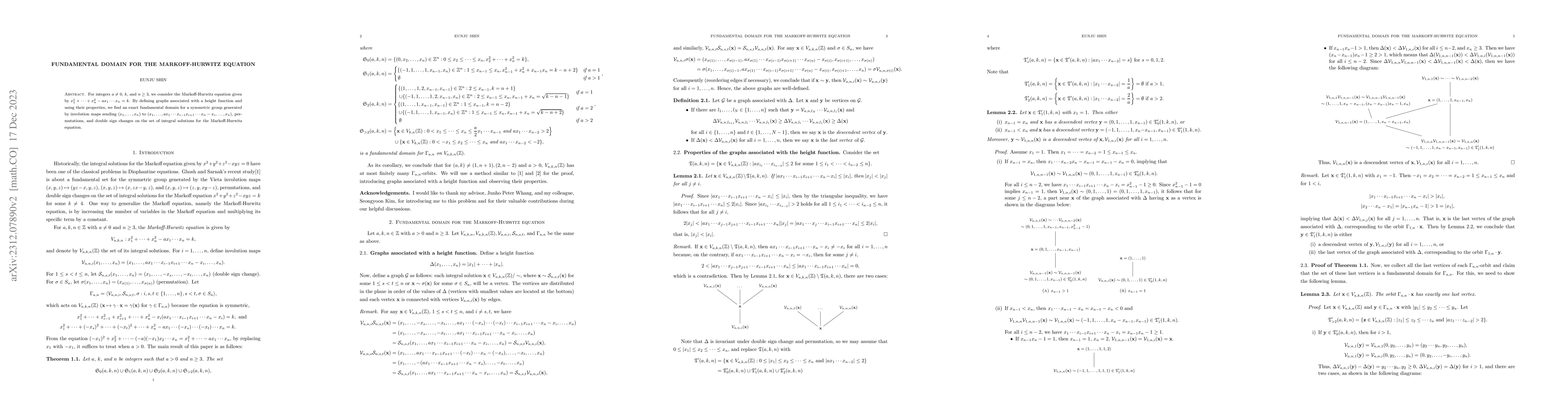This paper identifies an exact fundamental domain for the symmetric group acting on integral solutions of the Markoff-Hurwitz equation $x_1^2+\cdots+x_n^2-ax_1\cdots x_n=k$, using properties of associated graphs defined by a height function. The fundamental domain is derived through involution maps, permutations, and double sign changes.