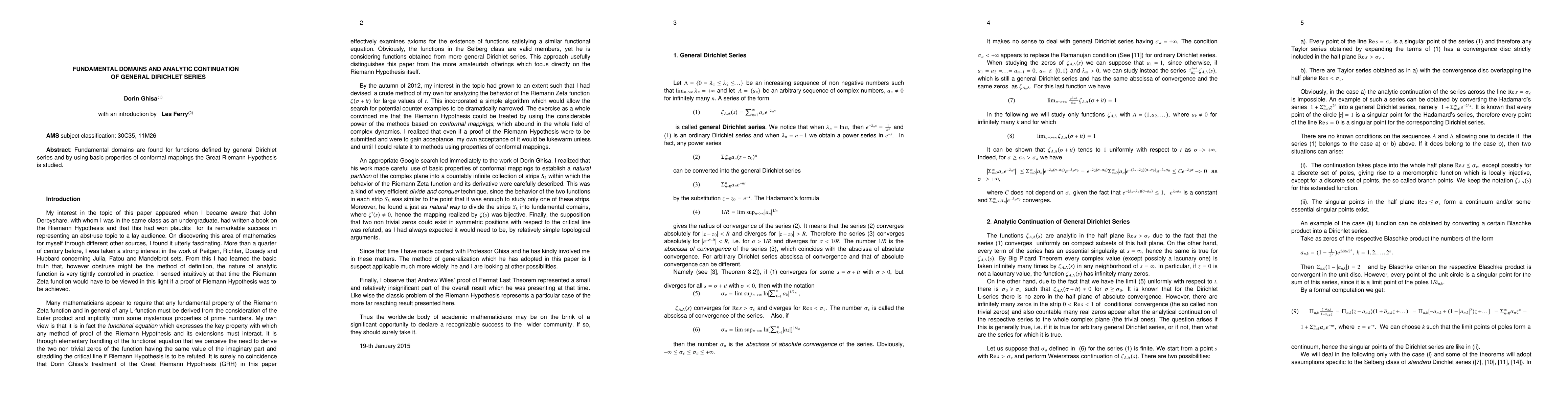 Fundamental domains are found for functions defined by general Dirichlet series and using basic properties of conformal mappings the Great Riemann Hypothesis is studied.