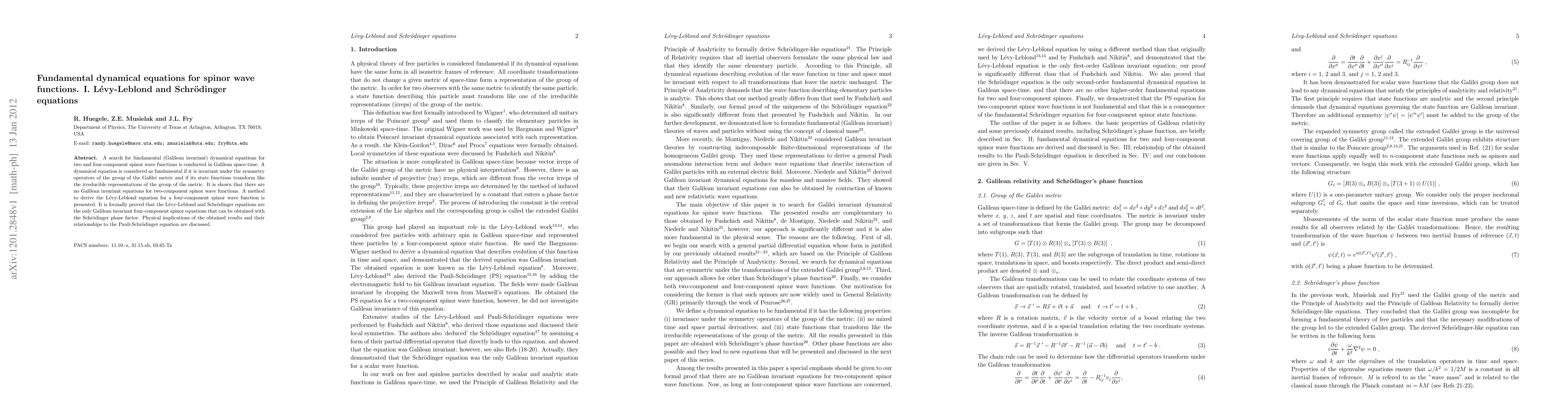Researchers found that there is no Galilean invariant equation for two-component spinor wave functions, but developed a method to derive the LÃvay-Leblond equation for four-component spinor wave functions, which shows it and the SchrÃdinger equation are the only Galilean invariant equations.