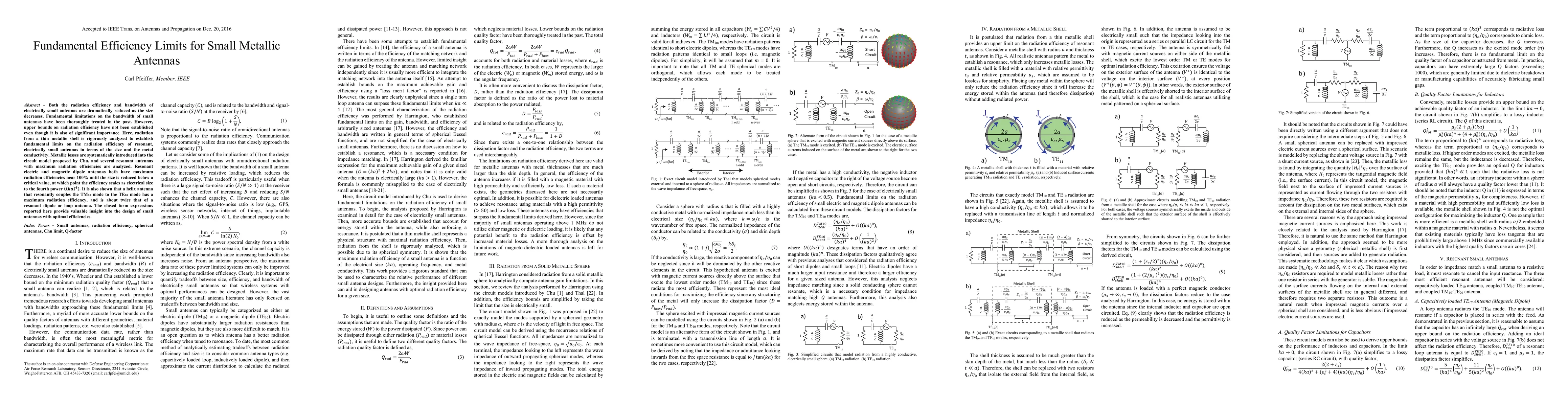 This paper establishes fundamental limits on the radiation efficiency of small metallic antennas, showing that efficiency scales as (ka)^4 when the size drops below a critical value. It also reveals that a helical antenna can achieve twice the efficiency of resonant dipole or loop antennas, providing insights for optimal small antenna design.