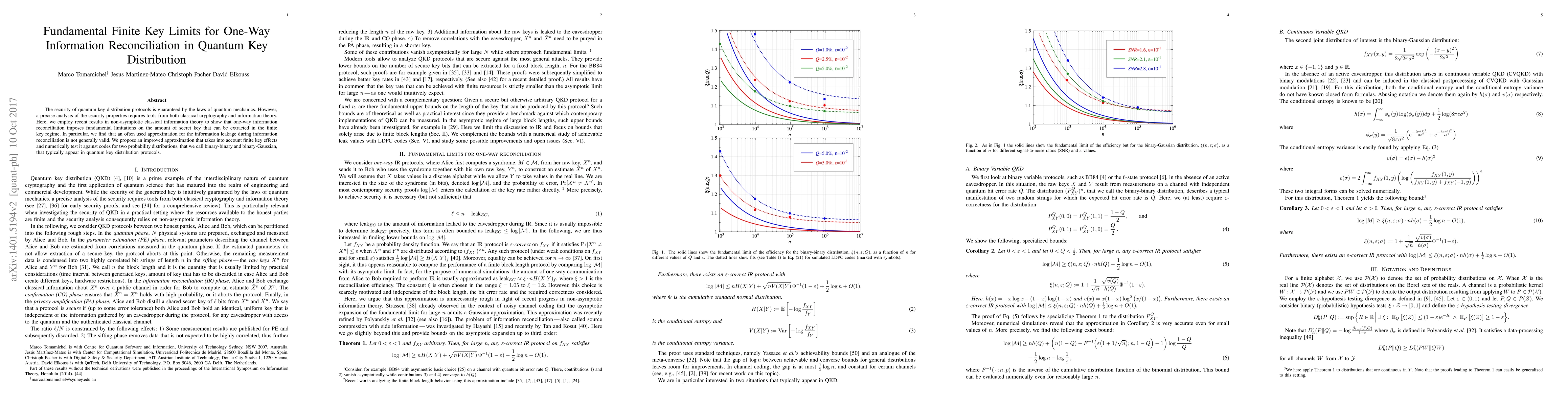 The security of quantum key distribution protocols is guaranteed by the laws of quantum mechanics. However, a precise analysis of the security properties requires tools from both classical cryptography and information theory. Here, we employ recent results in non-asymptotic classical information theory to show that one-way information reconciliation imposes fundamental limitations on the amount of secret key that can be extracted in the finite key regime. In particular, we find that an often used approximation for the information leakage during information reconciliation is not generally valid. We propose an improved approximation that takes into account finite key effects and numerically test it against codes for two probability distributions, that we call binary-binary and binary-Gaussian, that typically appear in quantum key distribution protocols.
