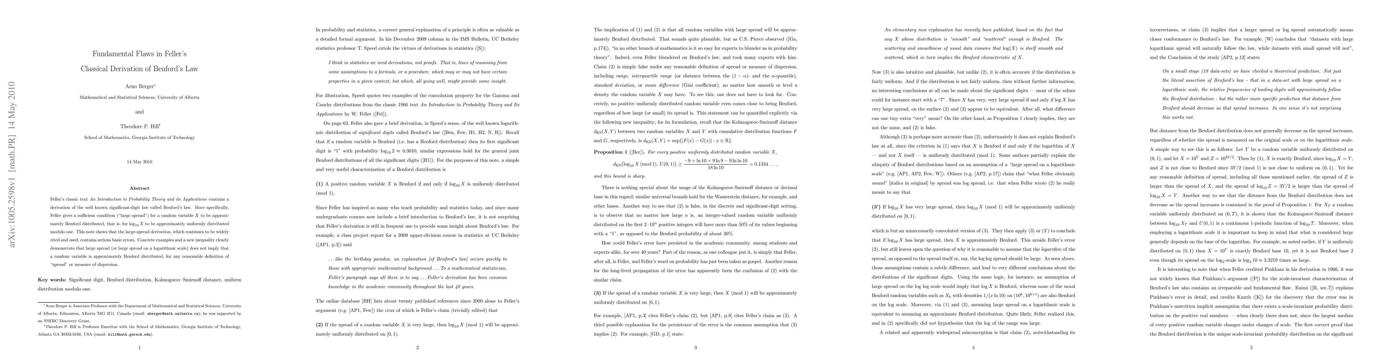 This paper identifies fundamental flaws in Feller's derivation of Benford's Law, showing that his "large spread" condition is insufficient for a random variable to be approximately Benford distributed. It provides counterexamples and a new inequality to demonstrate that large spread does not guarantee adherence to Benford's Law.