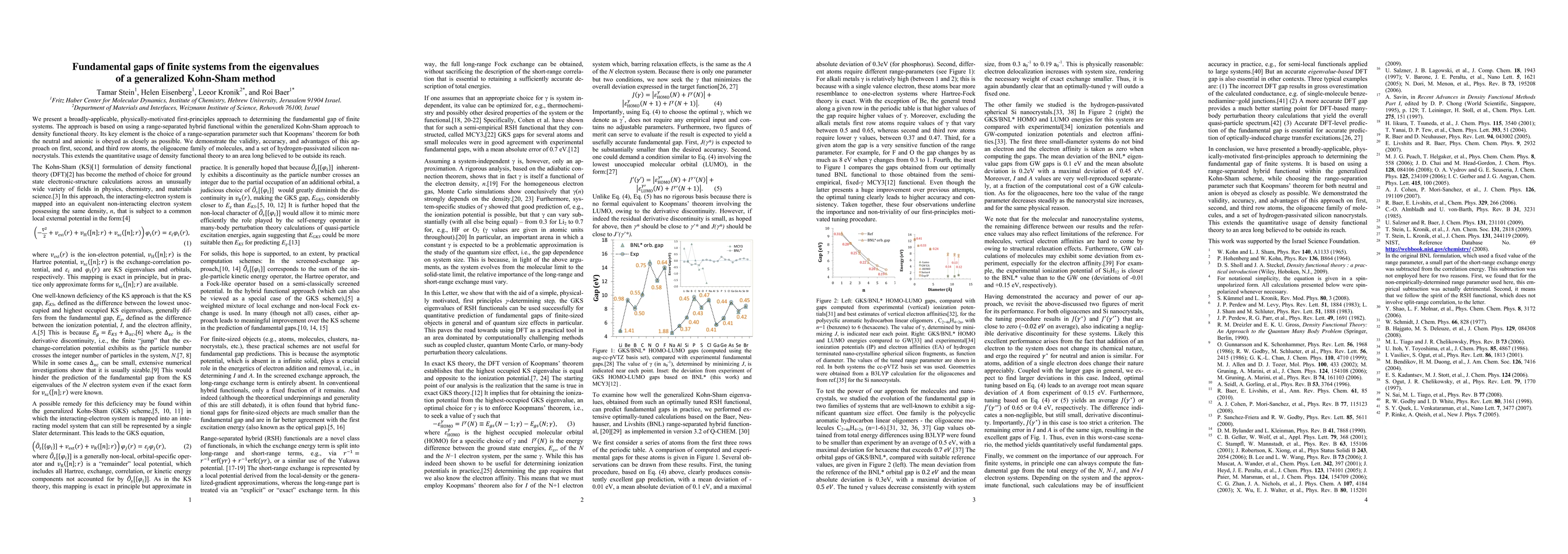We present a broadly-applicable, physically-motivated first-principles approach to determining the fundamental gap of finite systems. The approach is based on using a range-separated hybrid functional within the generalized Kohn-Sham approach to density functional theory. Its key element is the choice of a range-separation parameter such that Koopmans' theorem for both the neutral and anionic is obeyed as closely as possible. We demonstrate the validity, accuracy, and advantages of this approach on first, second, and third row atoms, the oligoacene family of molecules, and a set of hydrogen-passivated silicon nanocrystals. This extends the quantitative usage of density functional theory to an area long believed to be outside its reach.