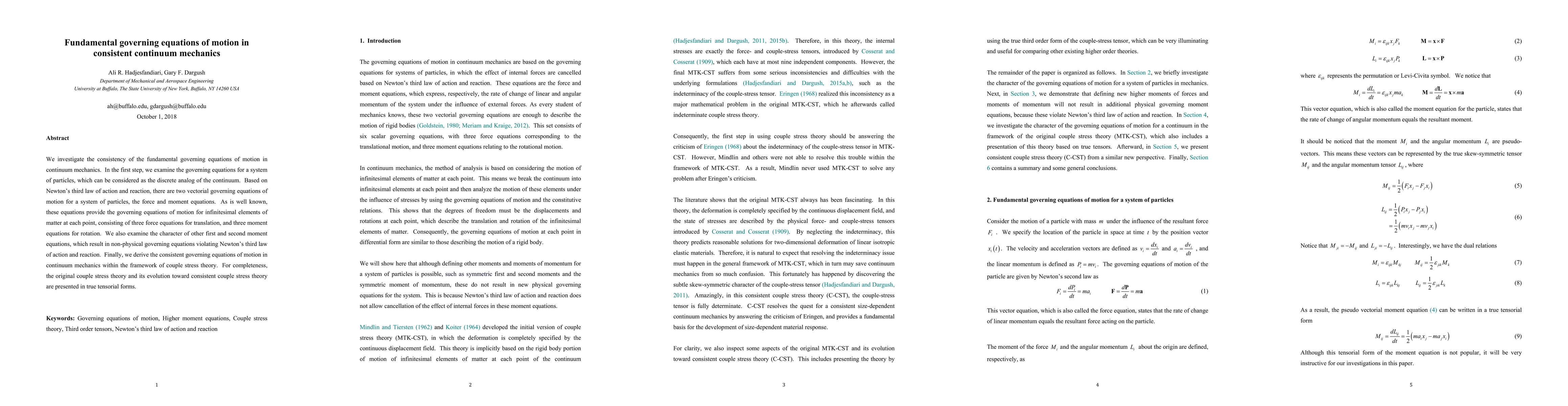 This paper investigates the consistency of fundamental equations of motion in continuum mechanics, comparing discrete particle systems to continuum formulations. It derives consistent governing equations within the framework of couple stress theory, addressing violations of Newton's third law in non-physical formulations.