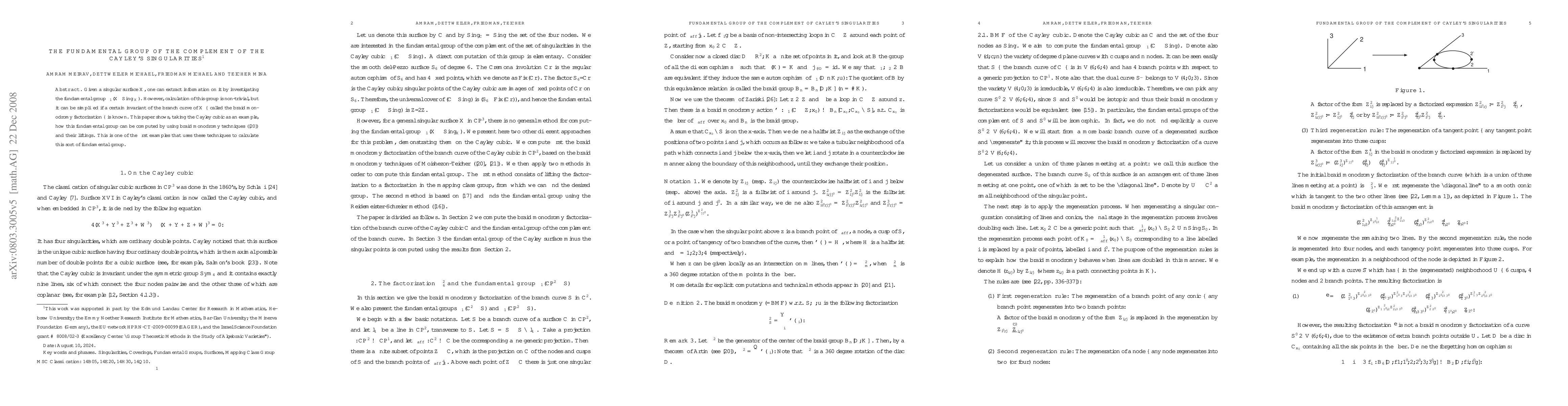 This paper demonstrates how braid monodromy techniques can simplify the calculation of the fundamental group $\pi_1(X - Sing_X)$ for a singular surface X, using the Cayley cubic as an example. It introduces the braid monodromy factorization as a key invariant for this computation.