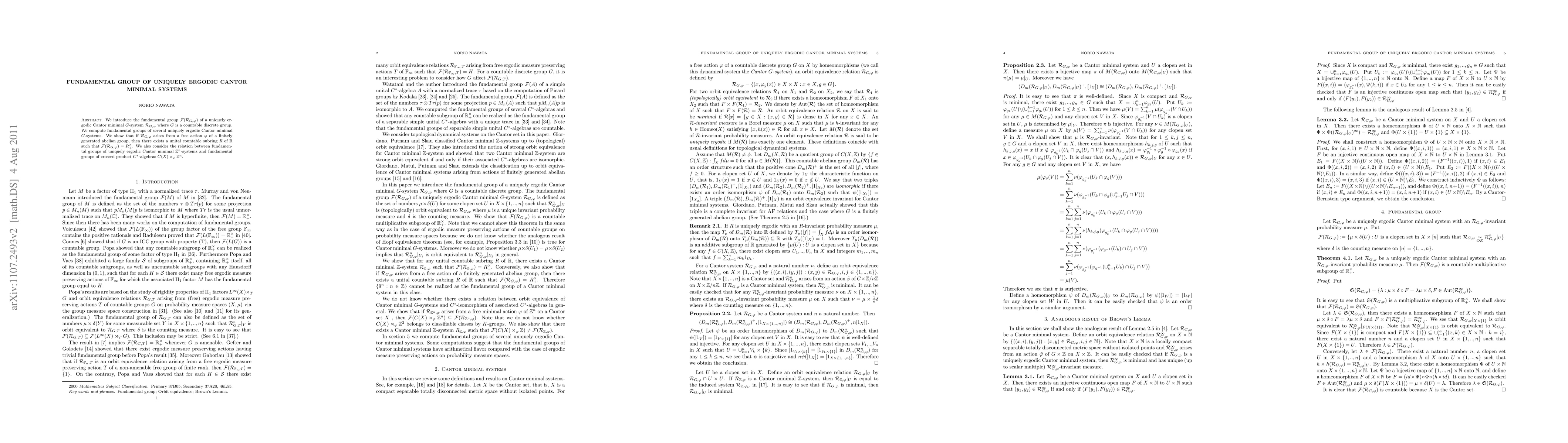 This paper introduces the fundamental group ${\mathcal F}(\mathcal{R}_{G, \phi})$ for uniquely ergodic Cantor minimal $G$-systems and computes several examples. It demonstrates that for systems arising from free actions of finitely generated abelian groups, the fundamental group corresponds to a unital countable subring $R$ of $\mathbb{R}$. The paper also explores connections between these groups and crossed product $C^*$-algebras.