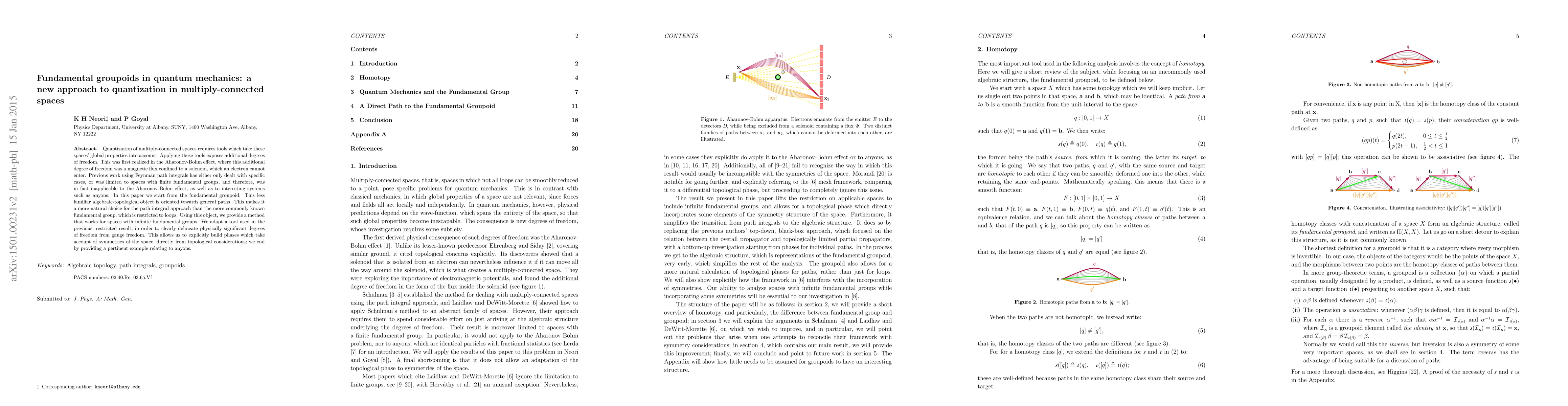 This paper proposes a novel approach to quantum mechanics quantization in multiply-connected spaces using fundamental groupoids, addressing limitations of previous Feynman path integral methods. It introduces a method applicable to spaces with infinite fundamental groups, distinguishing physical degrees of freedom from gauge ones, and demonstrates its utility with an anyon example.
