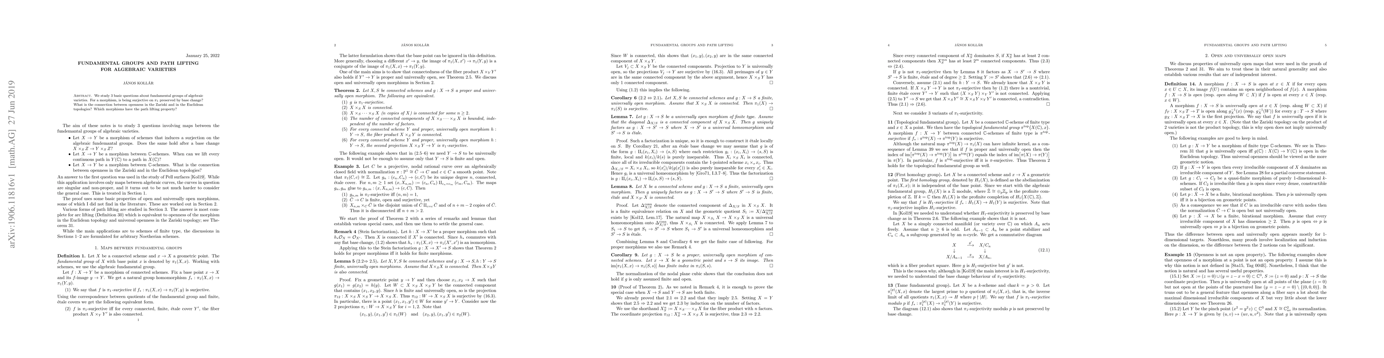Summary: This paper investigates three fundamental questions regarding the fundamental groups of algebraic varieties: whether surjectivity on the fundamental group is preserved under base change, the relationship between openness in Zariski and Euclidean topologies, and which morphisms exhibit the path lifting property.