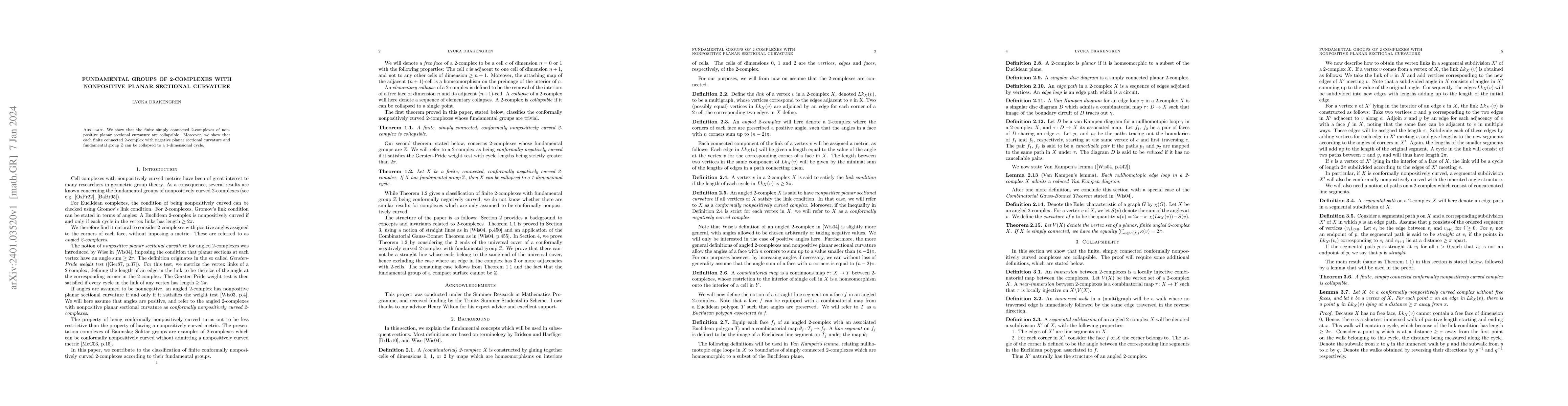Summary: This paper demonstrates that finite simply connected 2-complexes with nonpositive planar sectional curvature are collapsible, and finite connected 2-complexes with negative planar sectional curvature and fundamental group $\mathbb{Z}$ can be reduced to a 1-dimensional cycle.