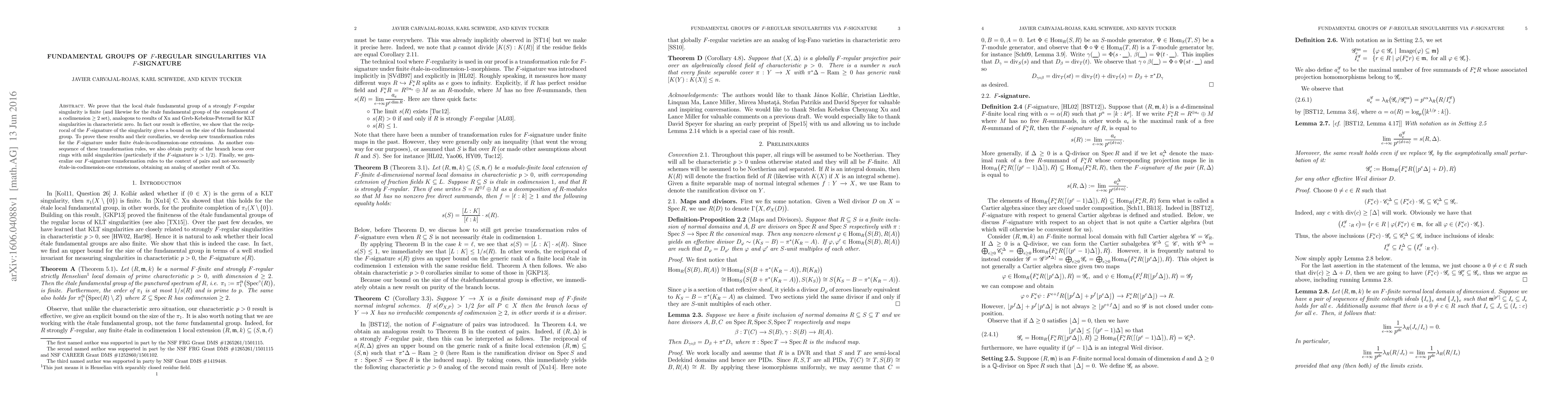 This paper establishes that the local étale fundamental group of a strongly $F$-regular singularity is finite, providing an effective bound via the reciprocal of the $F$-signature. It also introduces new transformation rules for $F$-signature and proves purity of the branch locus under certain conditions.