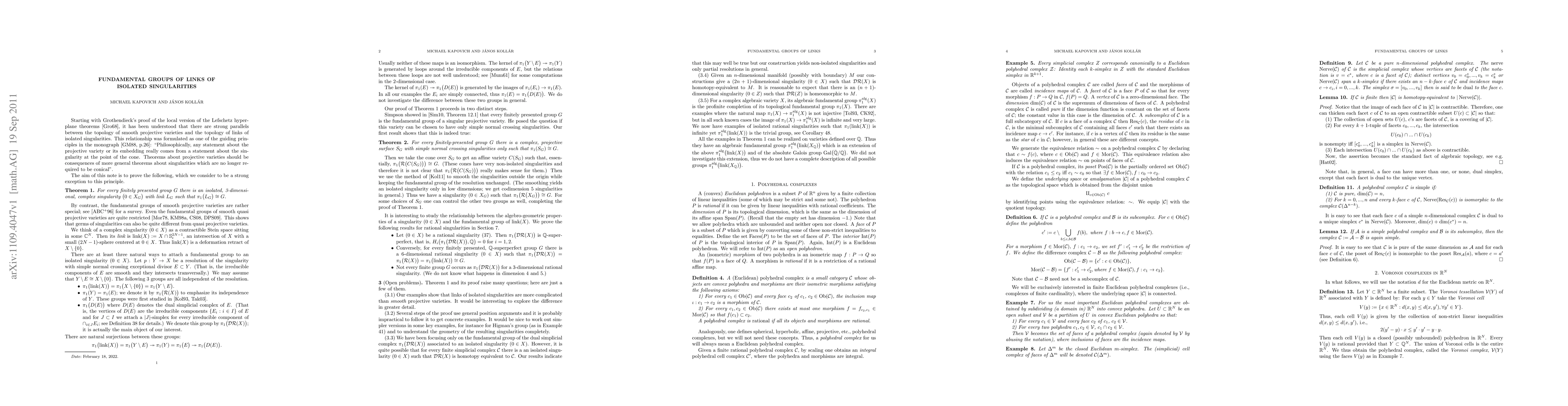 This paper constructs projective varieties with specified fundamental groups and isolated complex singularities, proving that any finitely-presented group can be realized as the fundamental group of such a link. It also establishes the equivalence between Q-superperfect groups and those isomorphic to the fundamental groups of rational singularities.