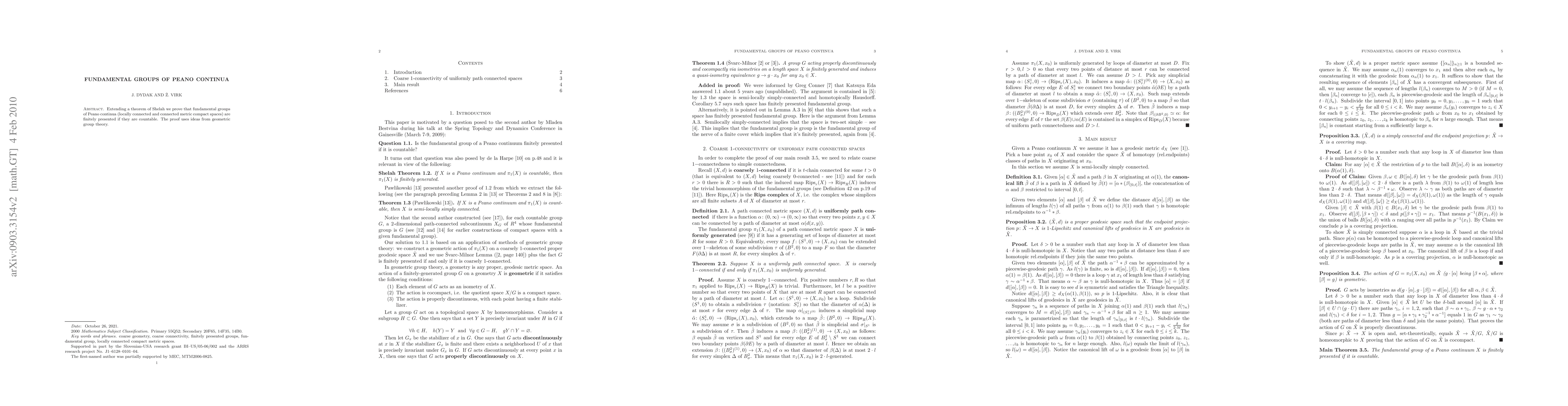 This paper extends Shelah's theorem to show that countable fundamental groups of Peano continua, which are locally connected and compact metric spaces, are finitely presented. The proof leverages techniques from geometric group theory.
