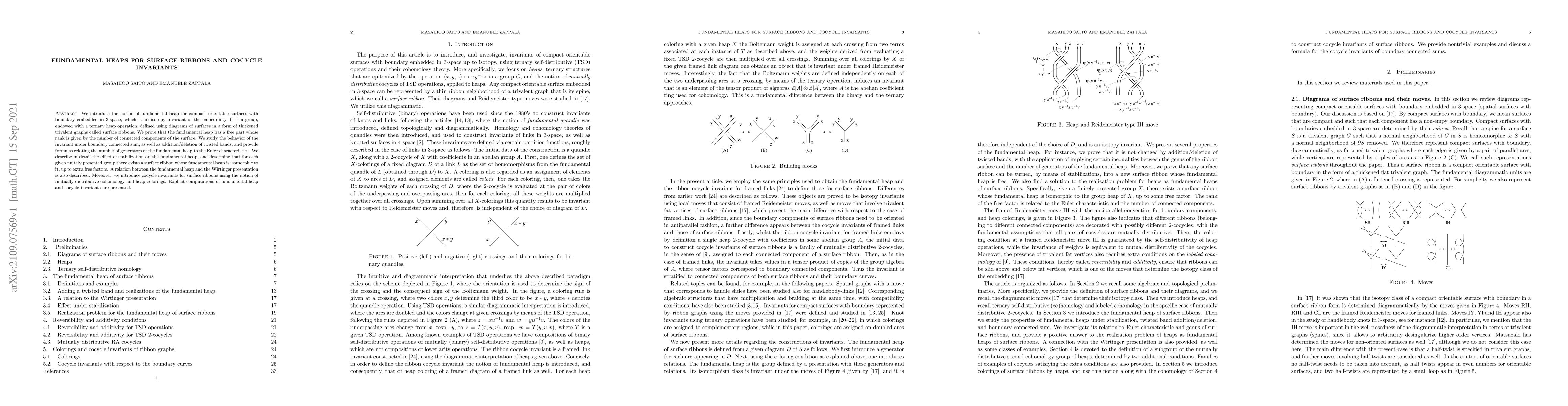 This paper introduces the concept of fundamental heap for surface ribbons embedded in 3-space, proving its isotopy invariance and free rank. It also explores the invariants' behavior under various operations and establishes a connection between the fundamental heap and cocycle invariants.