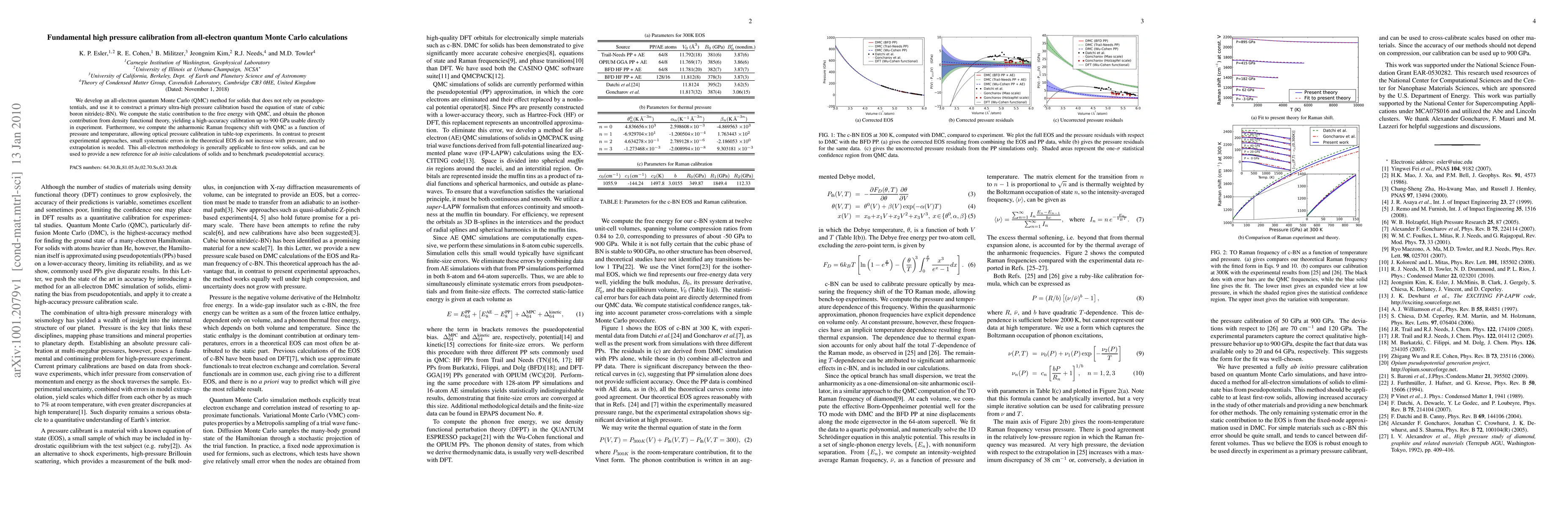 This paper develops an all-electron quantum Monte Carlo method for solids, using it to create a primary ultra-high pressure calibration for cubic boron nitride up to 900 GPa, and provides a new reference for ab initio calculations without the need for pseudopotentials. The methodology also allows for optical pressure calibration in experiments.