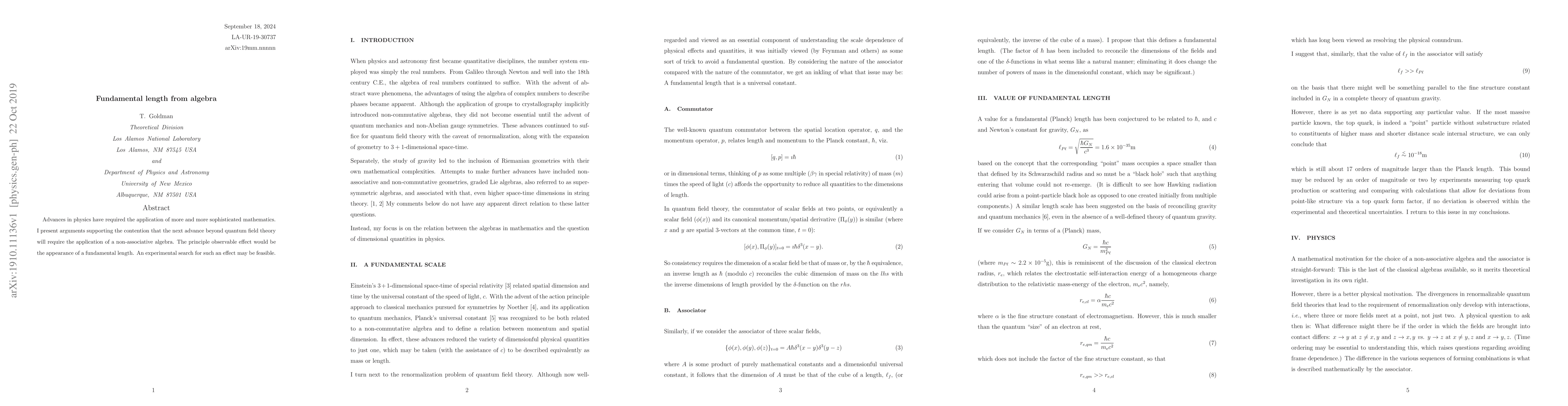 Advances in physics have required the application of more and more sophisticated mathematics. I present arguments supporting the contention that the next advance beyond quantum field theory will require the application of a non-associative algebra. The principle observable effect would be the appearance of a fundamental length. An experimental search for such an effect may be feasible.