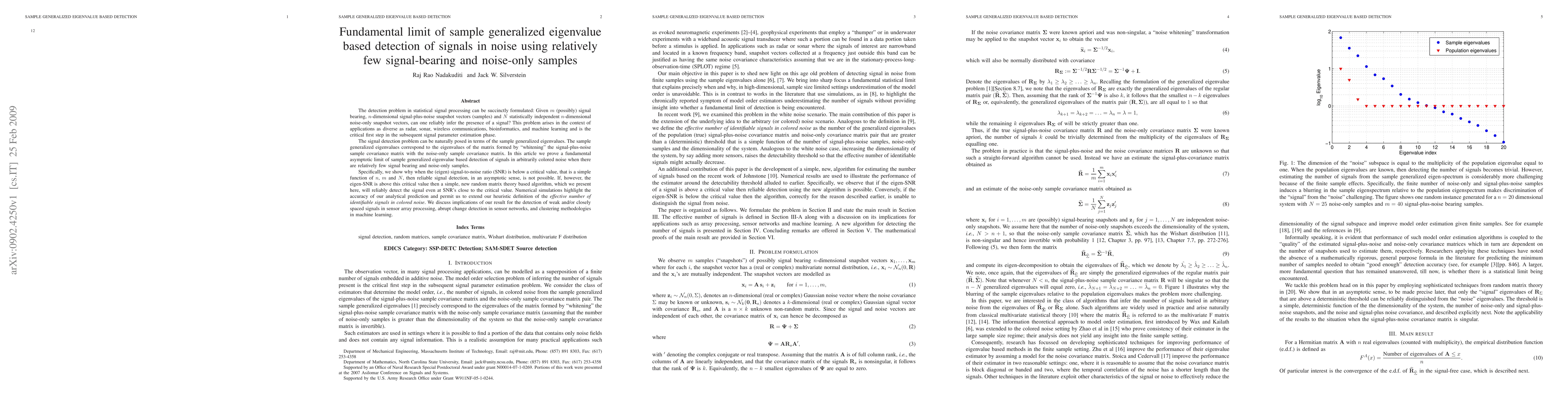 This paper establishes a fundamental limit for detecting signals in noise using sample generalized eigenvalues, even when the number of signal-bearing and noise-only samples is relatively small. The findings have implications for radar, sonar, wireless communications, and machine learning applications.