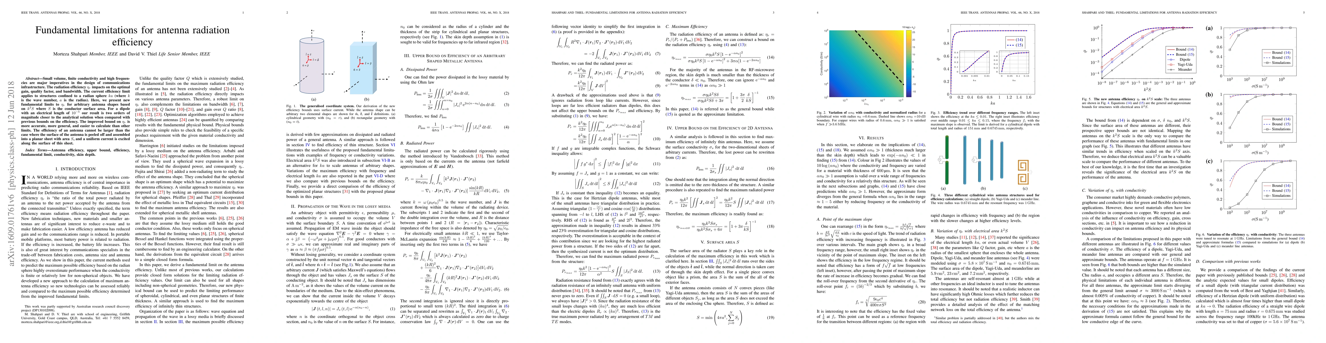 Small volume, finite conductivity and high frequencies are major imperatives in the design of communications infrastructure. The radiation efficiency $\eta_r$ impacts on the optimal gain, quality factor, and bandwidth. The current efficiency limit applies to structures confined to a radian sphere $ka$ ($k$ is the wave number, $a$ is the radius). Here we present new absolute limits to $\eta_r$ for arbitrary antenna shapes based on $k^2S$ where $S$ is the conductor surface area. For a dipole with an electrical length of $10^{-5}$ our result is four orders of magnitude closer to the analytical solution when compared with previous bounds on the efficiency. The improved bound on $\eta_r$ is more accurate, more general, and easier to calculate than other limits. The efficiency of an antenna cannot be larger than the case where the surface of the antenna is 'peeled' off and assembled into a planar sheet with area $S$, and a uniform current is excited along the surface of this sheet.